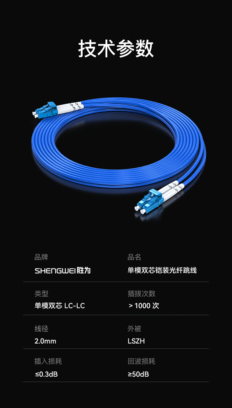 • 商品名称:胜为 LC-LC 多模OM2双管双芯铠装光纤跳线