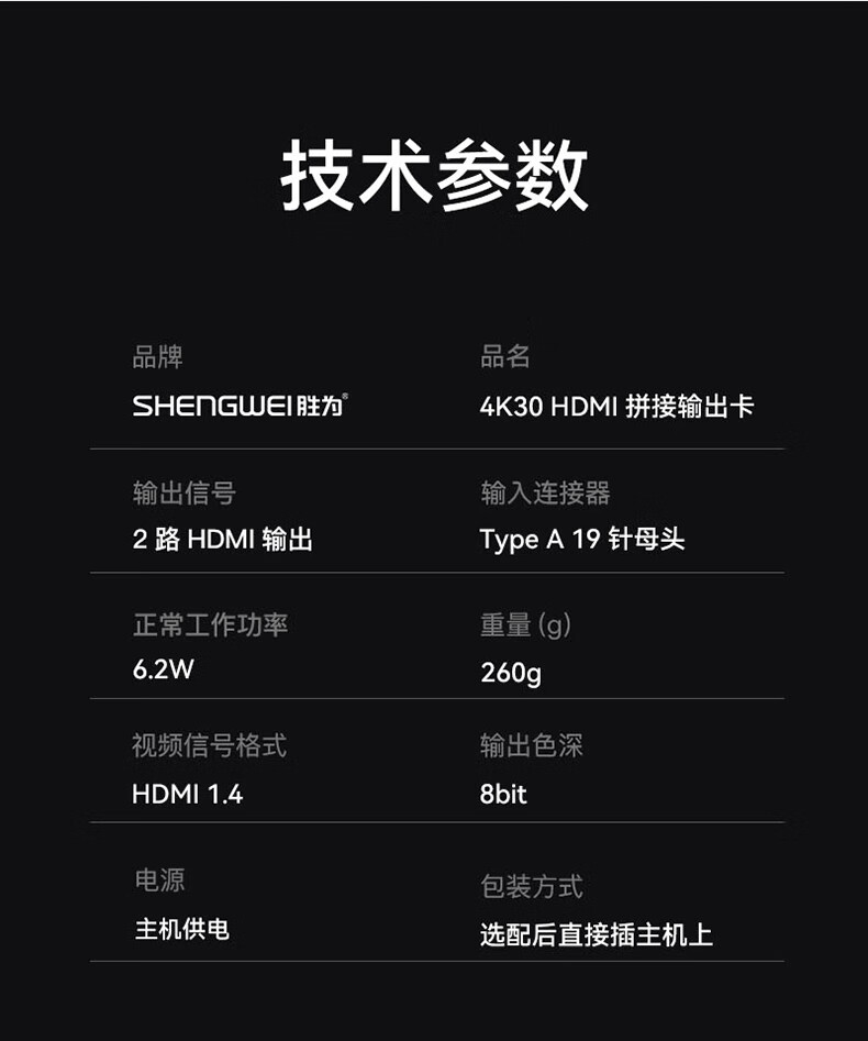 胜为 HDMI拼接处理器输入卡板 DPJ041HK 4路 7.8W 1个