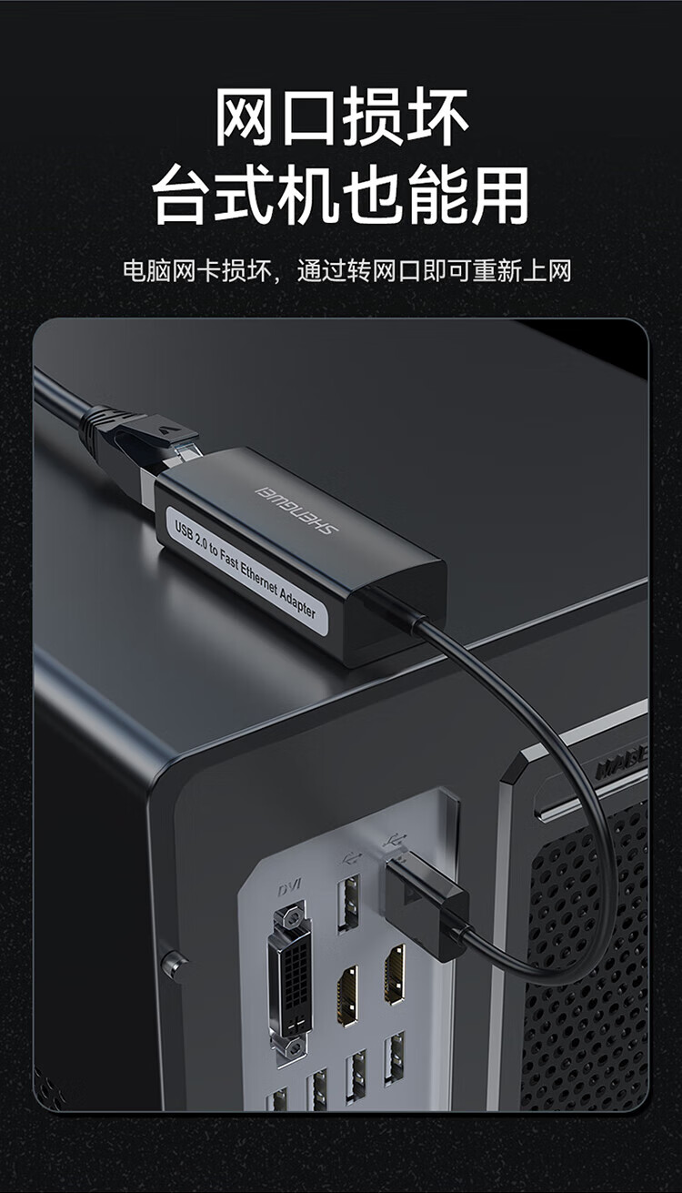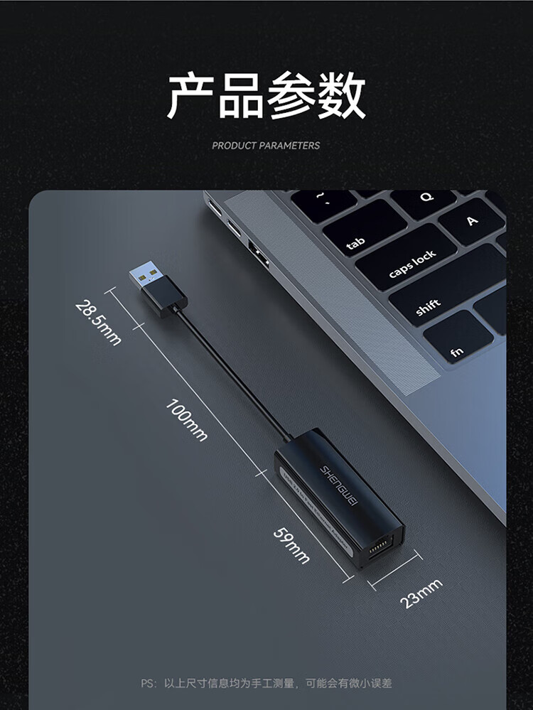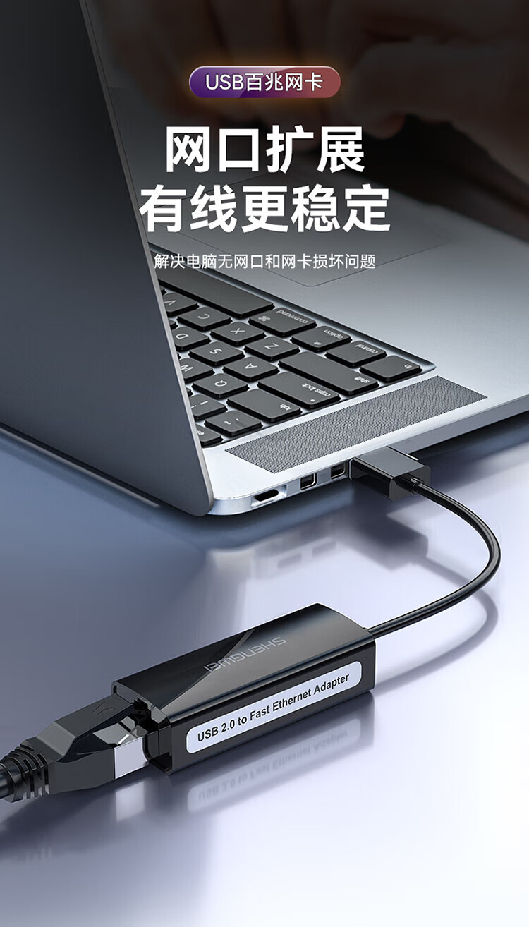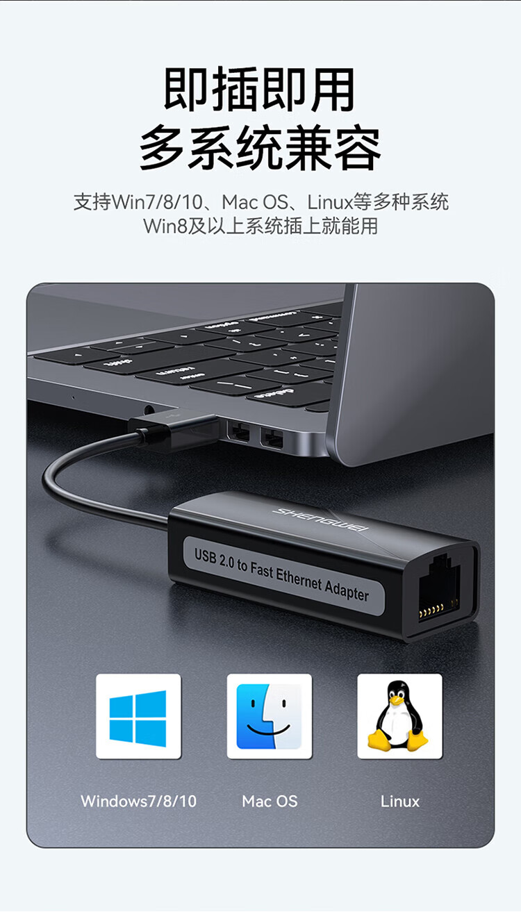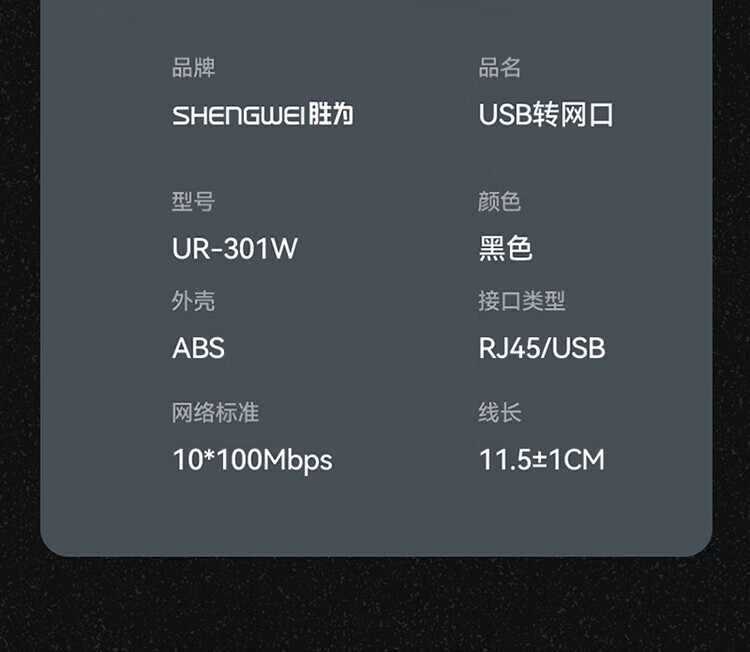 胜为 USB2.0百兆网卡 UR-301G 黑色 0.15M 1个