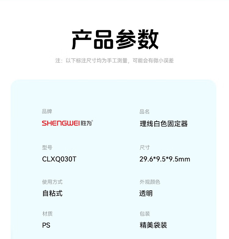 胜为 固线器 CLXQ030T PS材质 透明 29.6*11*10.2mm 20个 1包