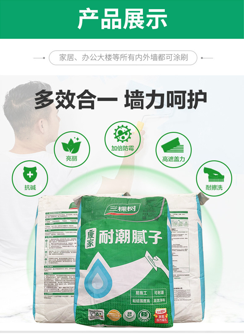 三棵树 耐潮面层腻子粉 20kg 1包