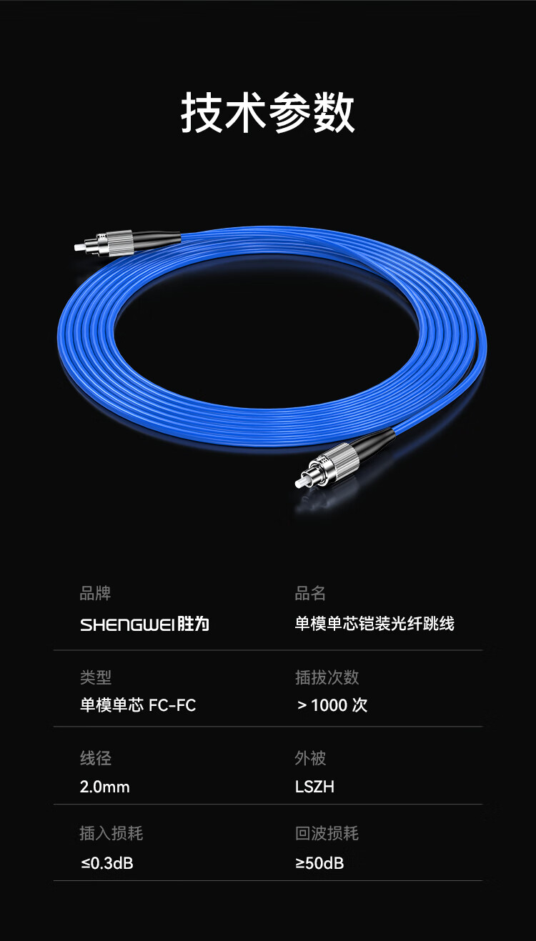 • 商品名称:胜为 FC-FC 单模单芯铠装光纤跳线