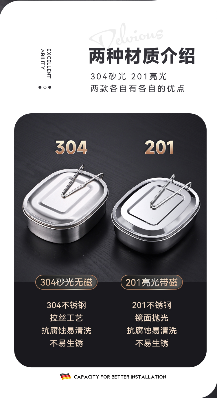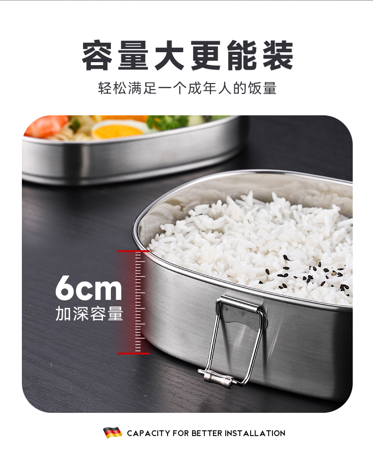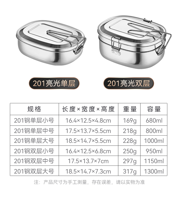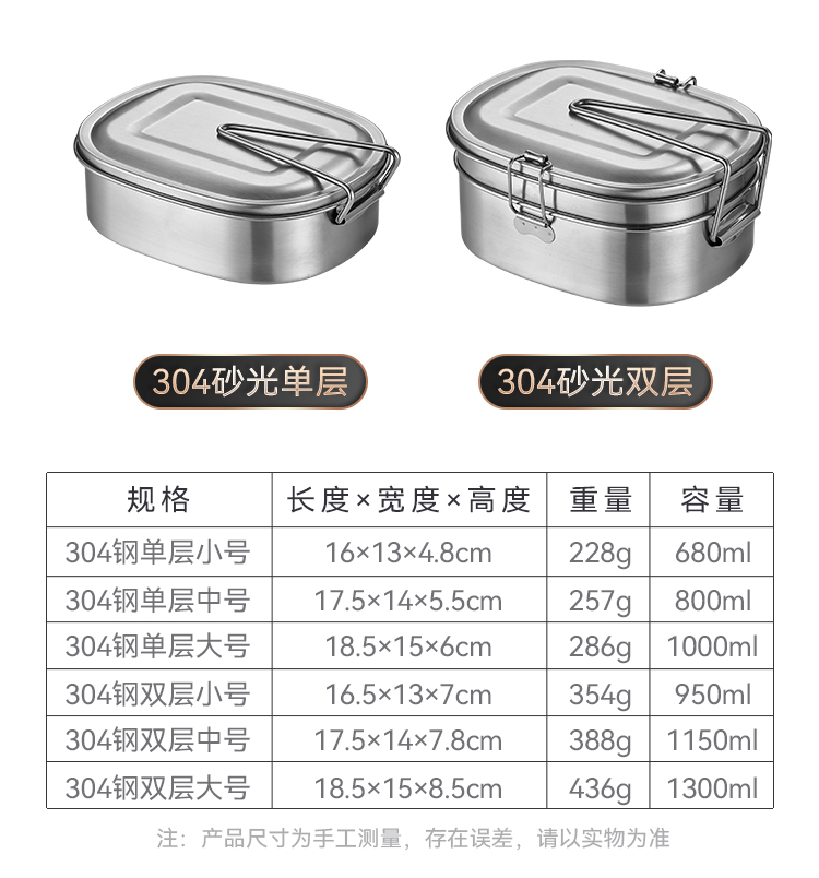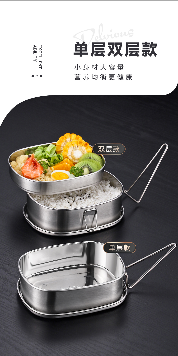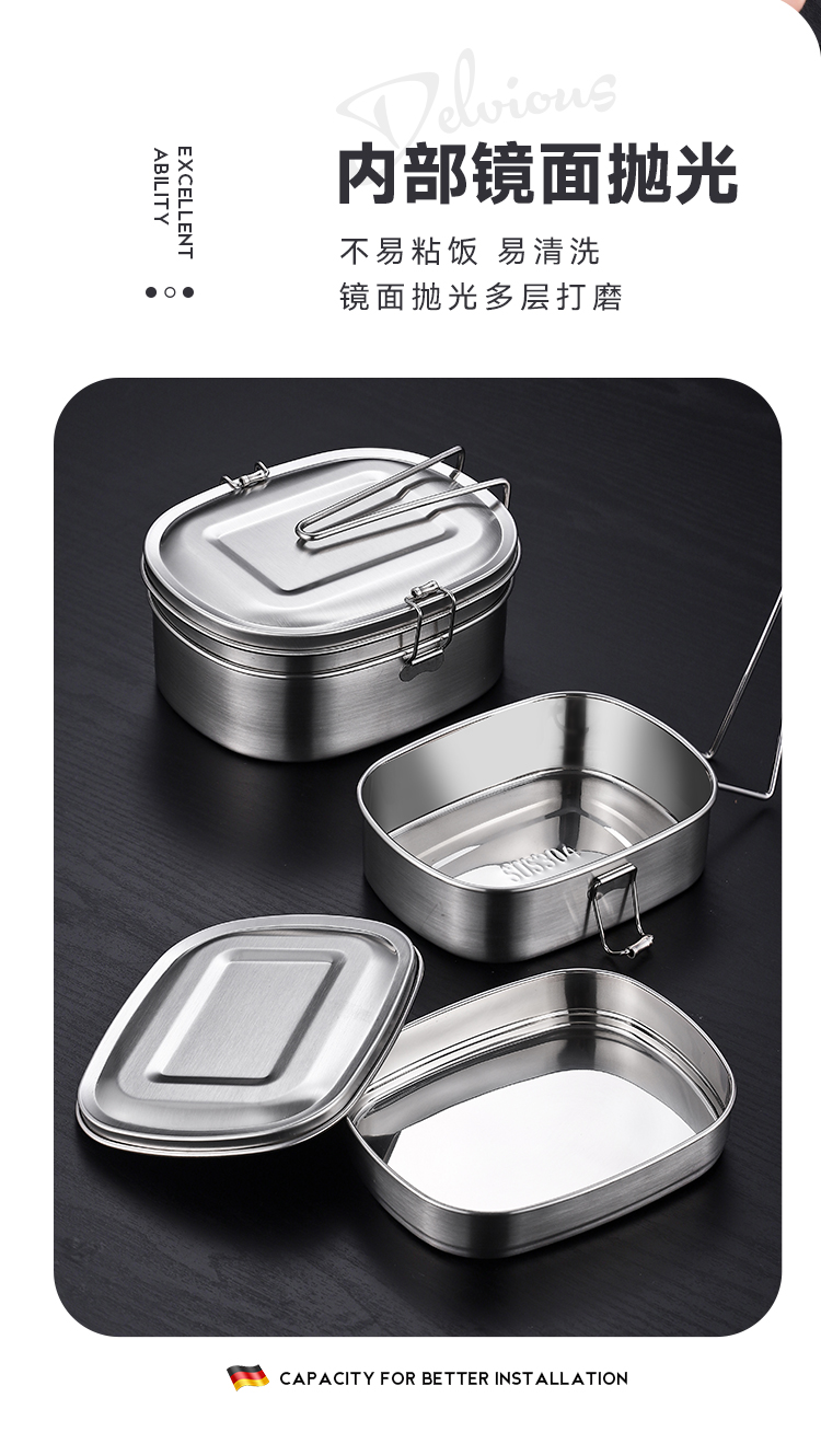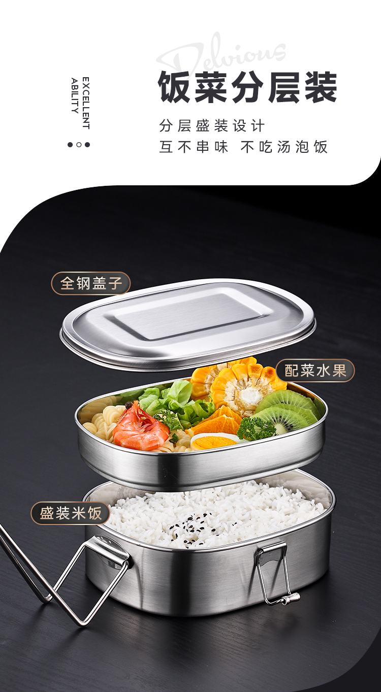国产通用 304不锈钢饭盒 大号单层饭盒(送勺筷) 1个