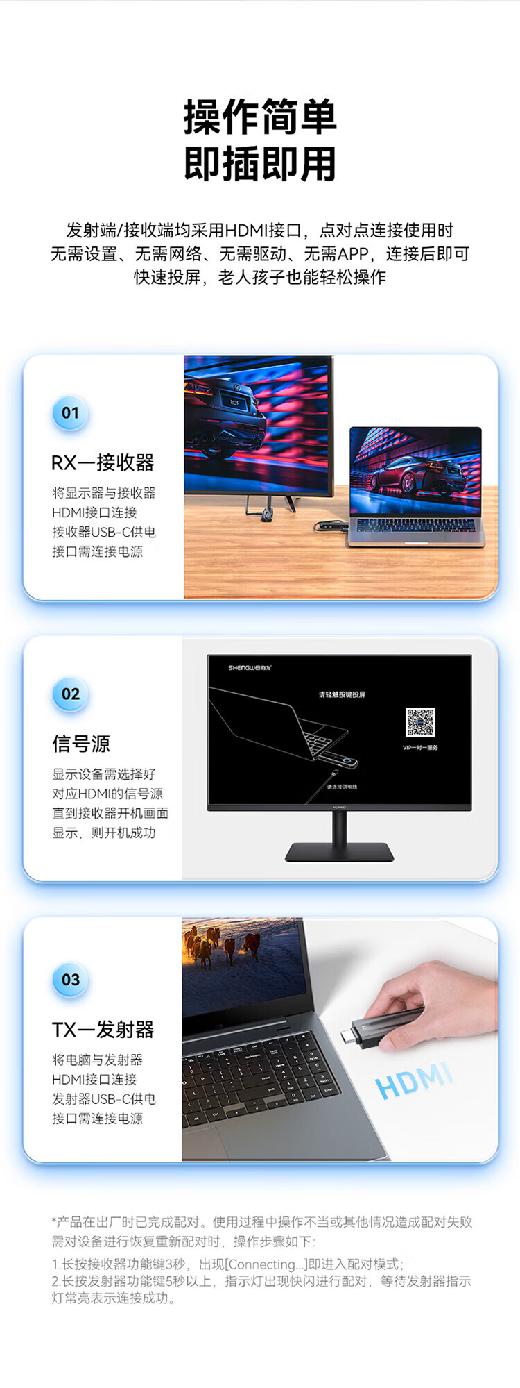 胜为 HDMI无线投屏器 DHH005AB 黑色 1080P 1套