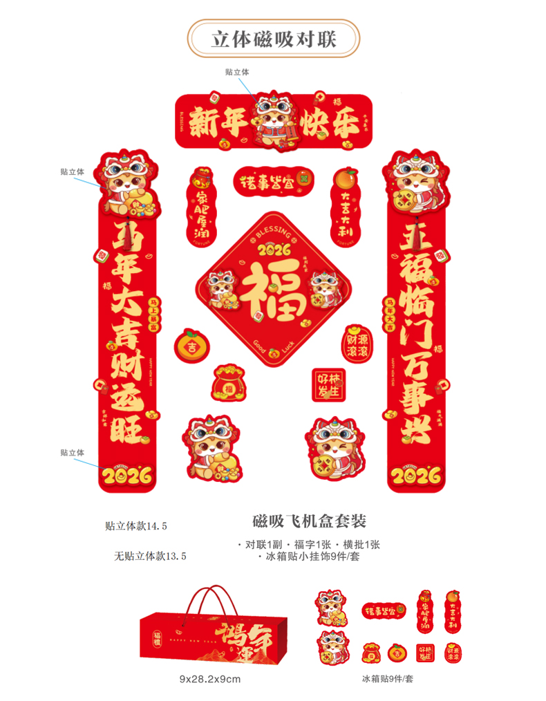 海斯迪克 春联套装礼盒装 HKBL7-1 新年快乐 立体磁吸 68cm 1盒
