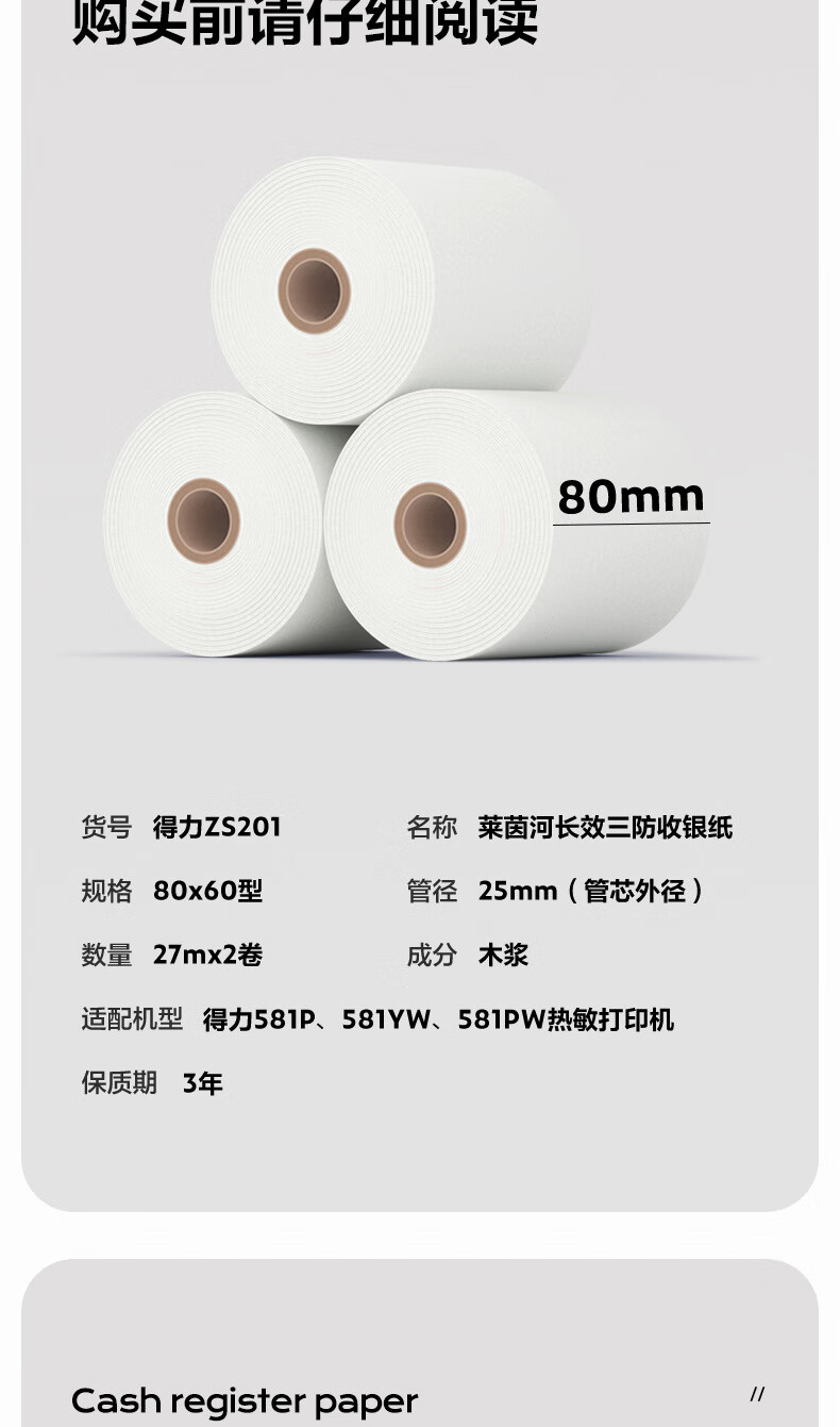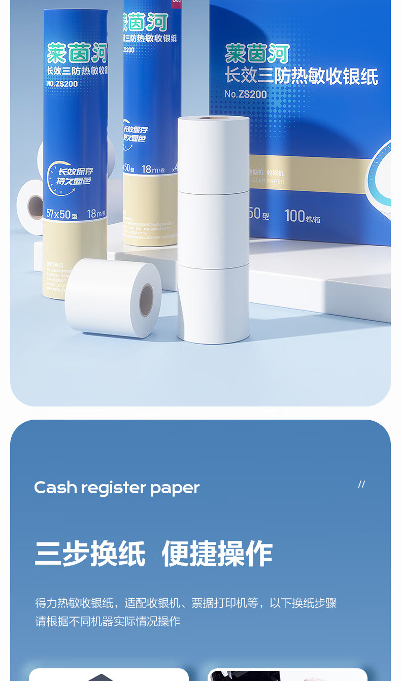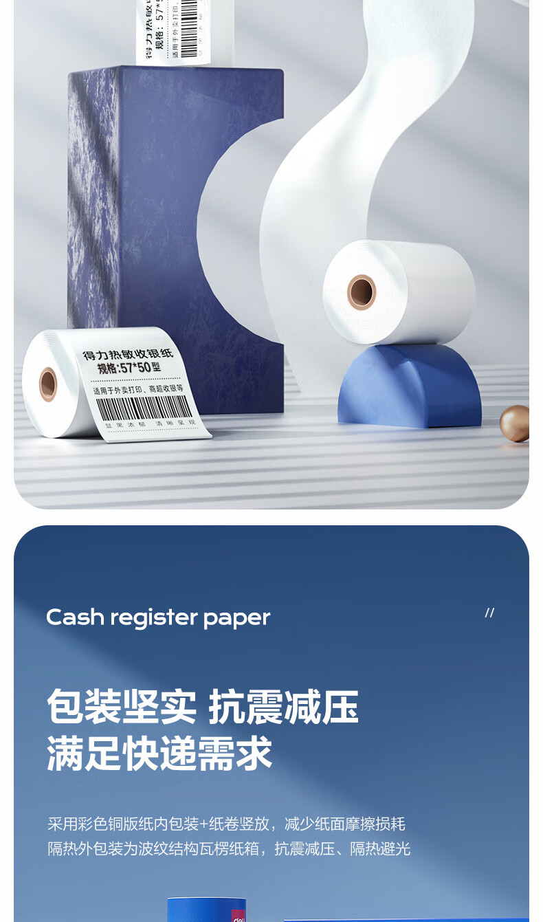 得力 莱茵河长效三防热敏收银纸 ZS200 57×50型 4卷 1筒