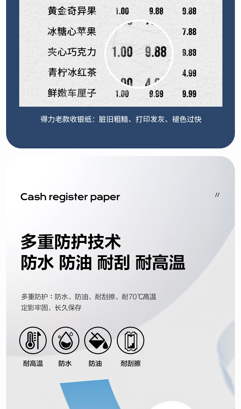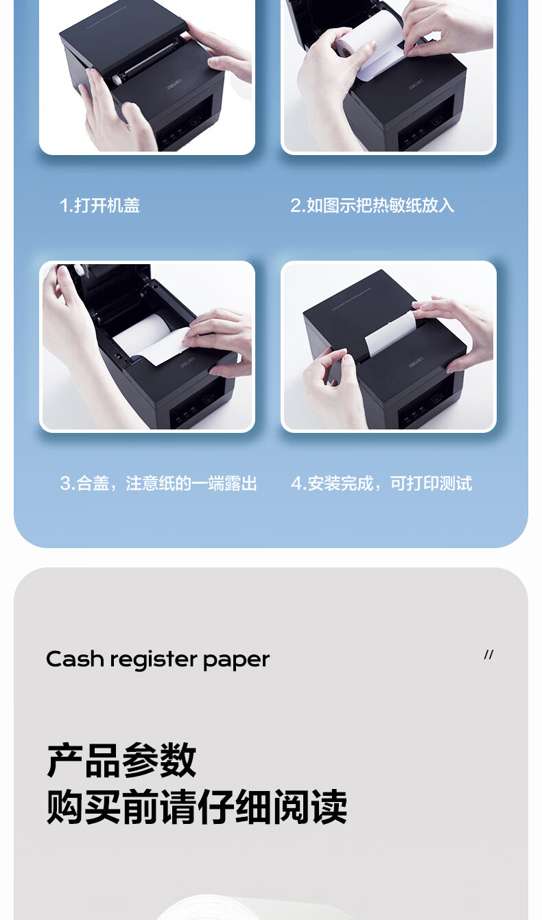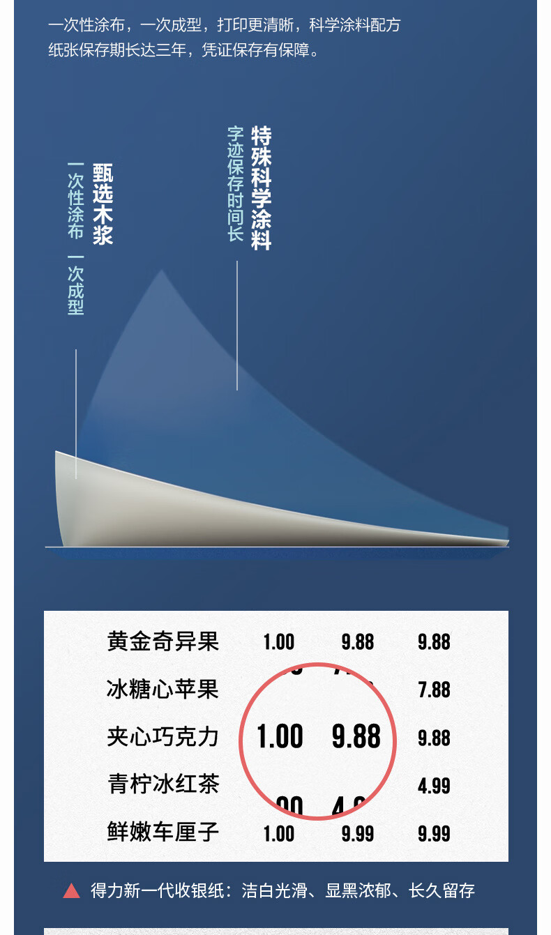 得力 莱茵河长效三防热敏收银纸 ZS200 57×50型 4卷 1筒