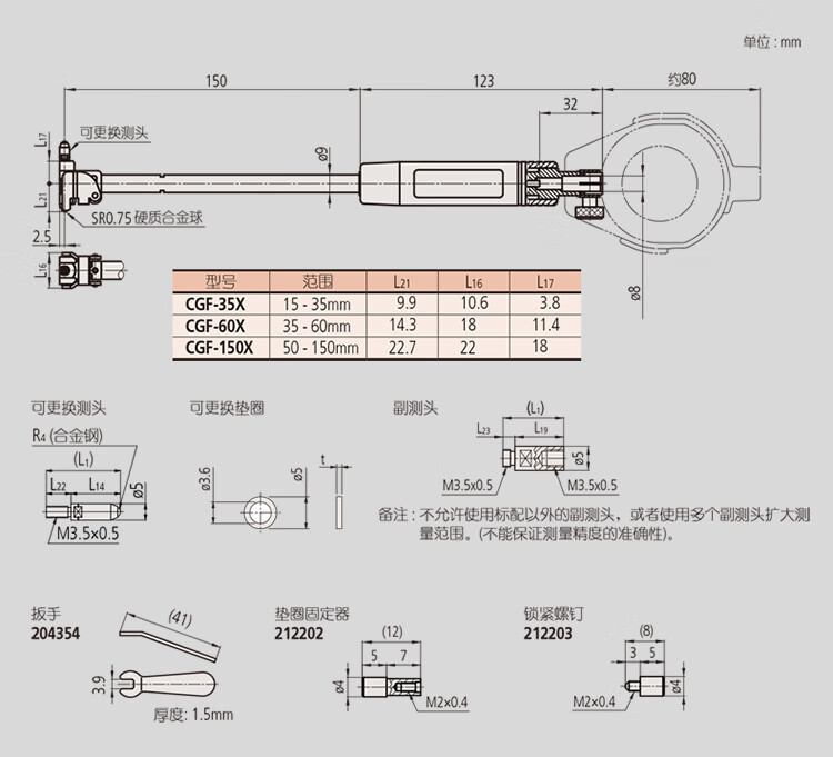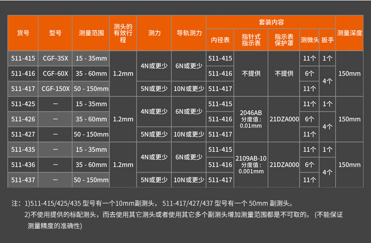 三丰 盲孔内径表 511-415 4μm 15-35mm 不配指示表 1套
