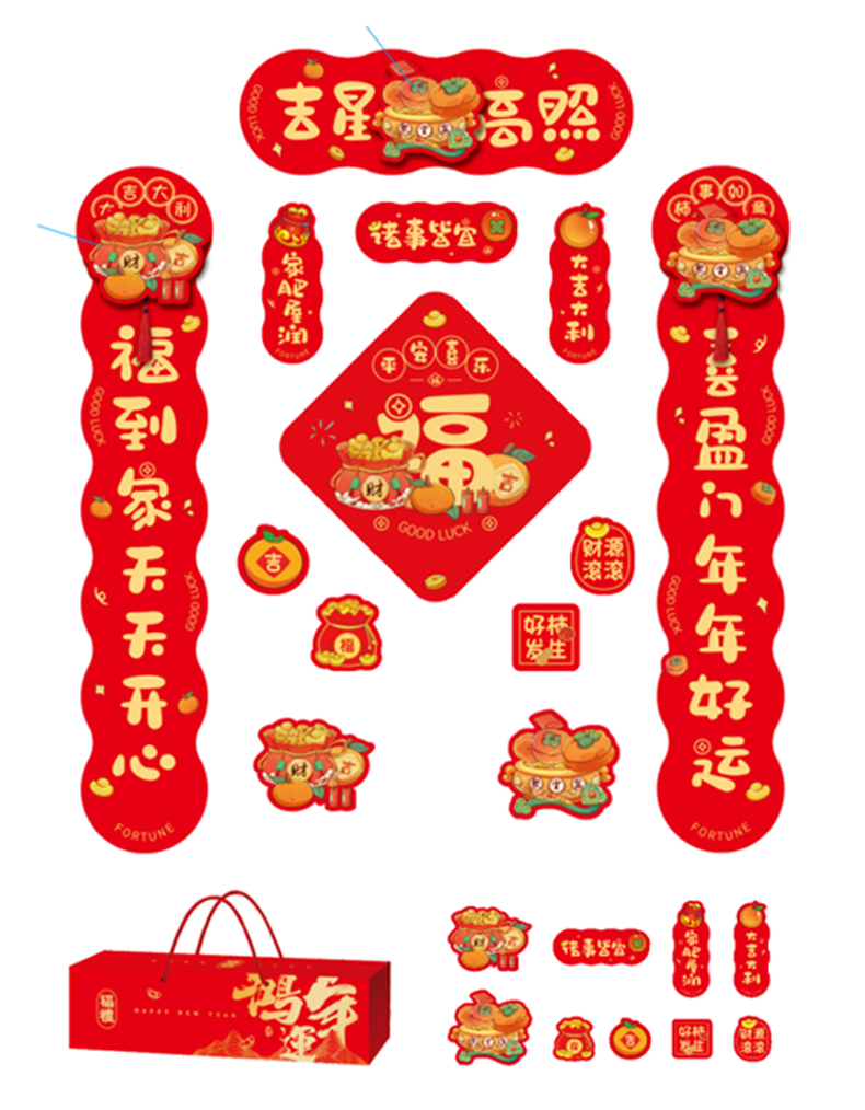 海斯迪克 春联套装礼盒装 HKBL8-1 迎春接福 5件套 68cm 立体磁吸 1盒