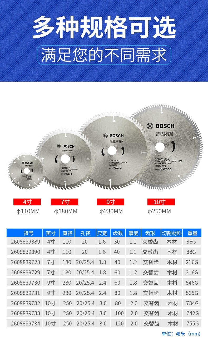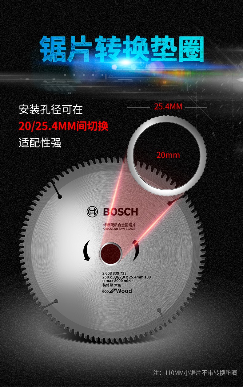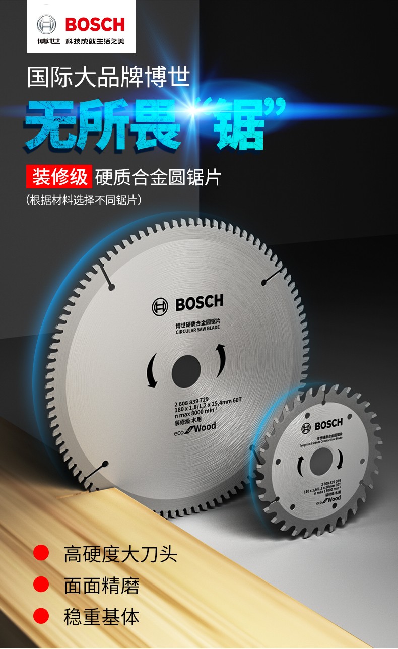 博世 圆锯片(装修级/木) 9“x60Tx25.4x2.8(1.8) 1片