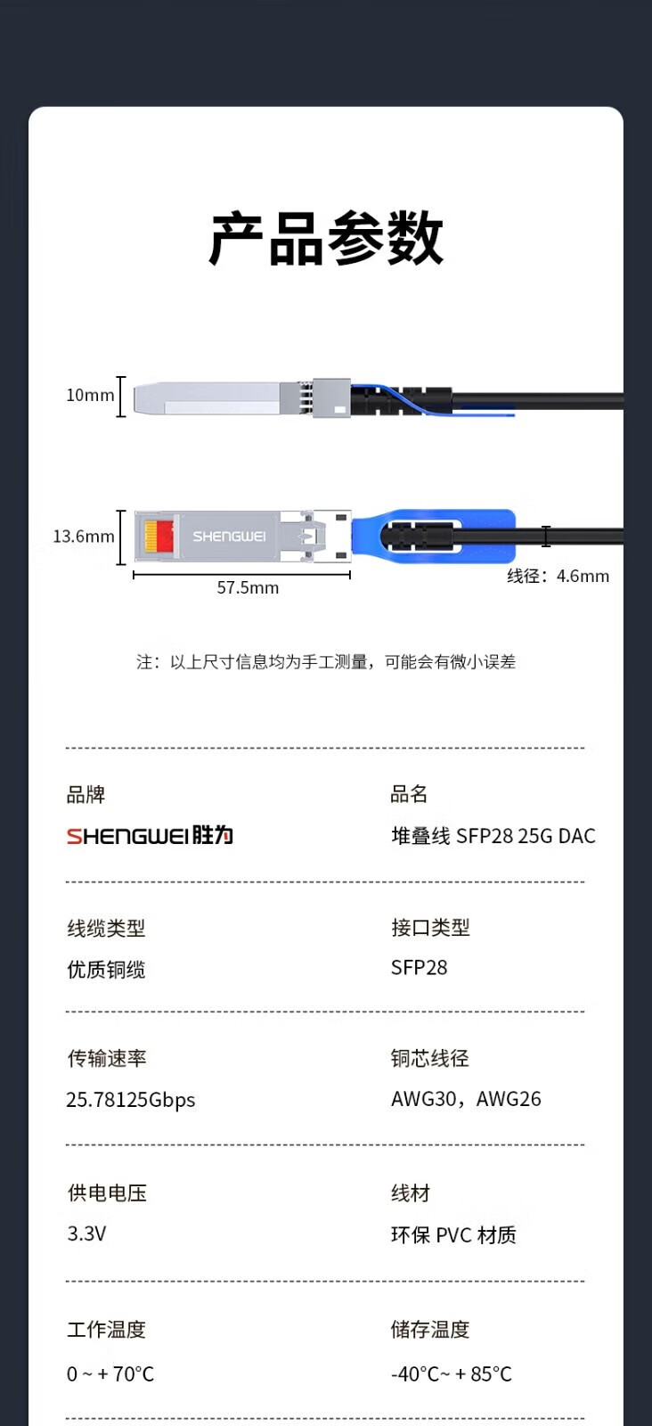 胜为 25G SFP28+DAC万兆堆叠线 XDAC0204 4m 1条
