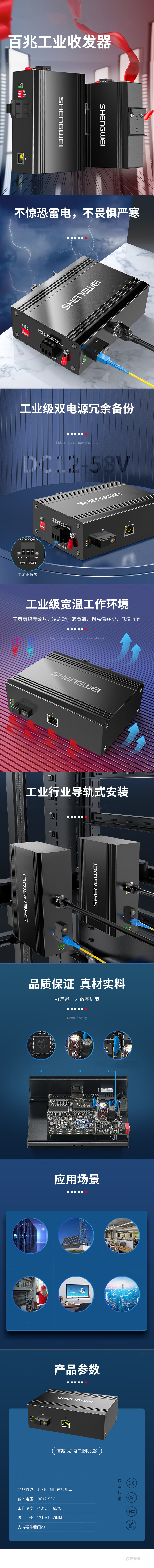 胜为 百兆工业收发器 BGHJ112T 一光一电 单模双纤 SC接口 ≤20KM 1盒