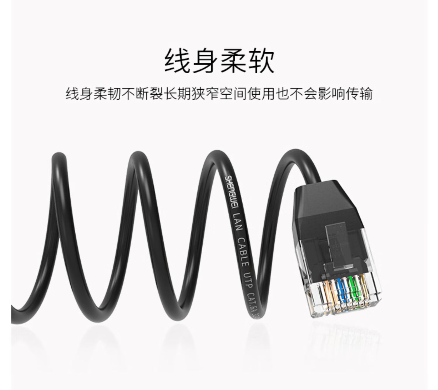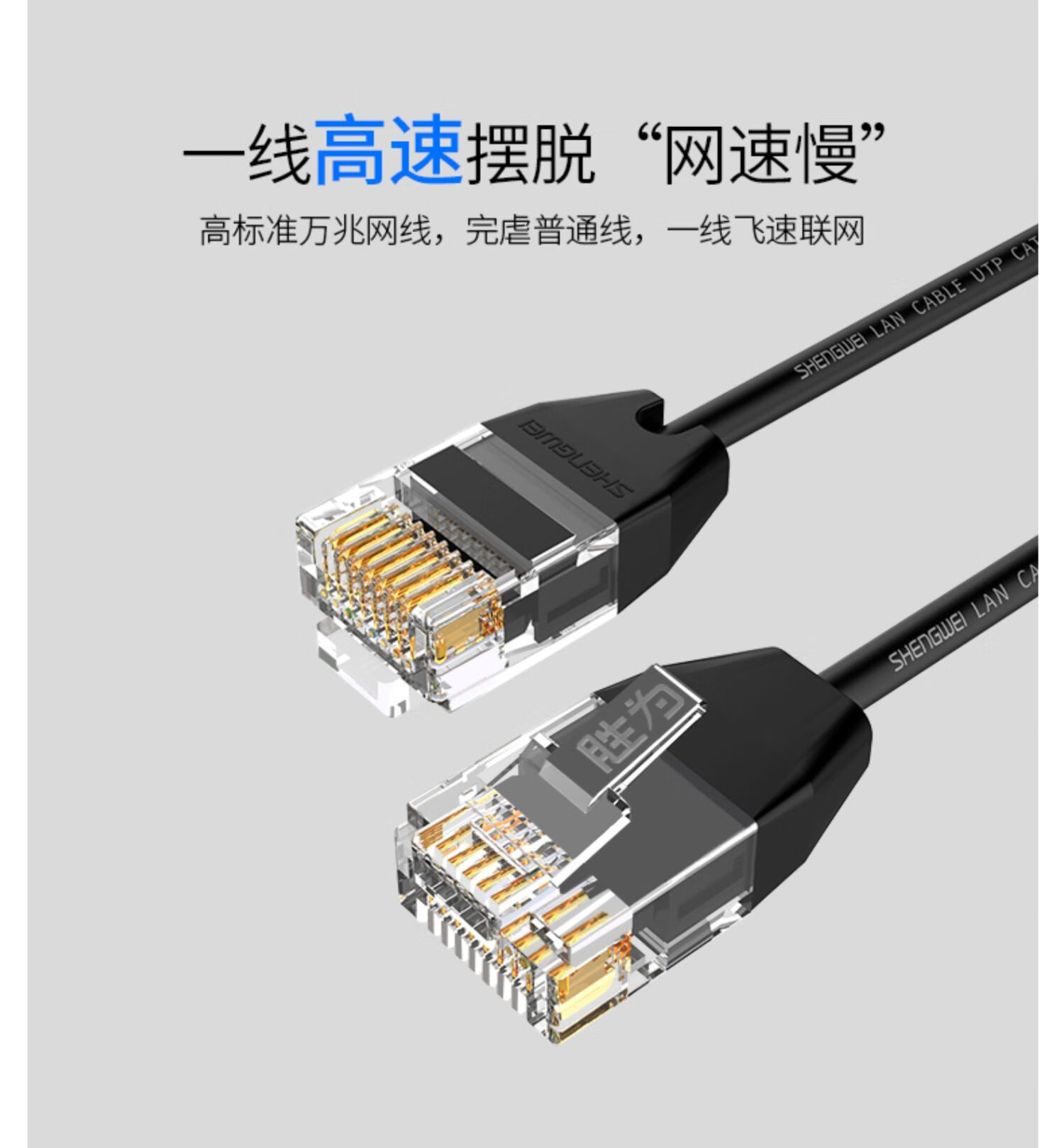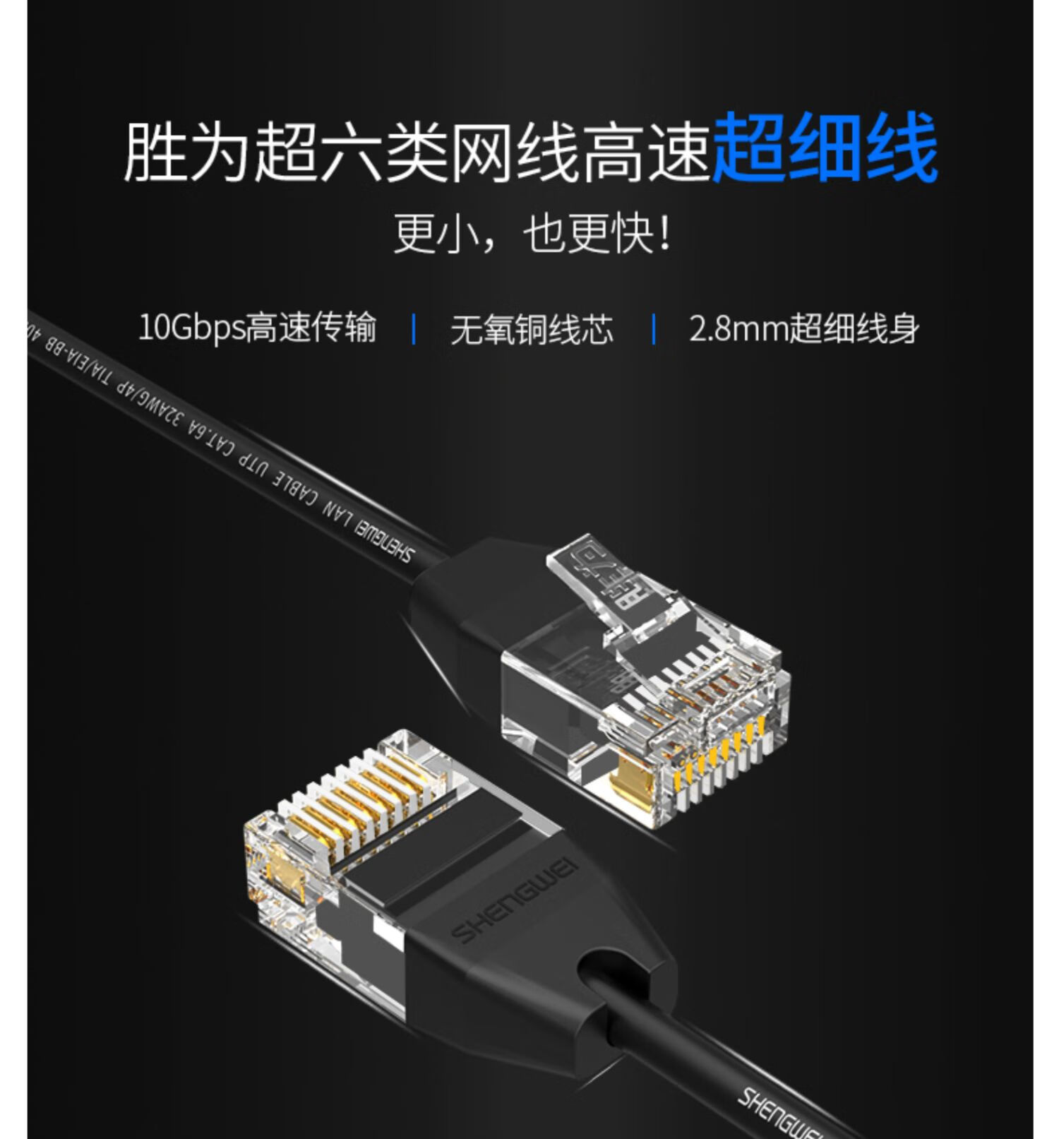 胜为 CAT6A非屏蔽超细PVC网络跳线 LC-9030G 无氧铜 雅典黑 3m 1条
