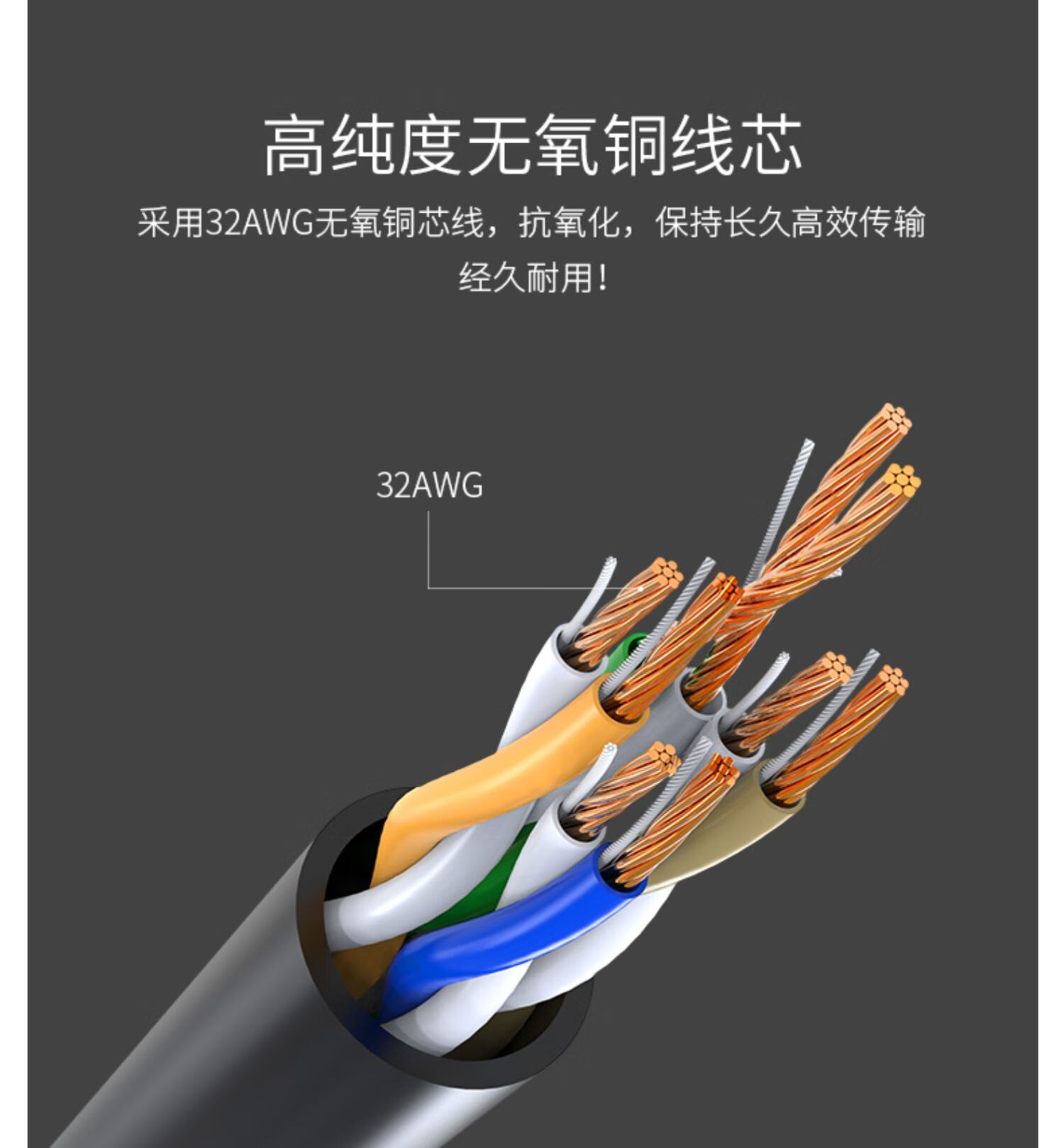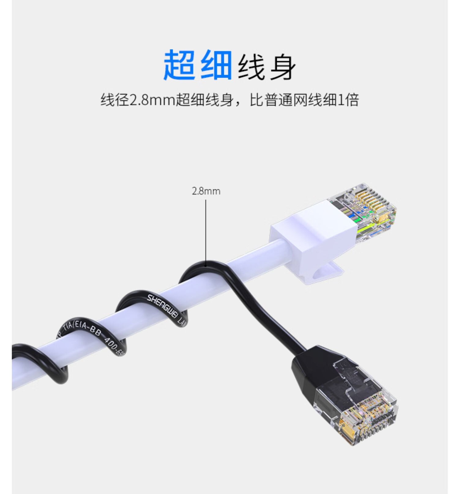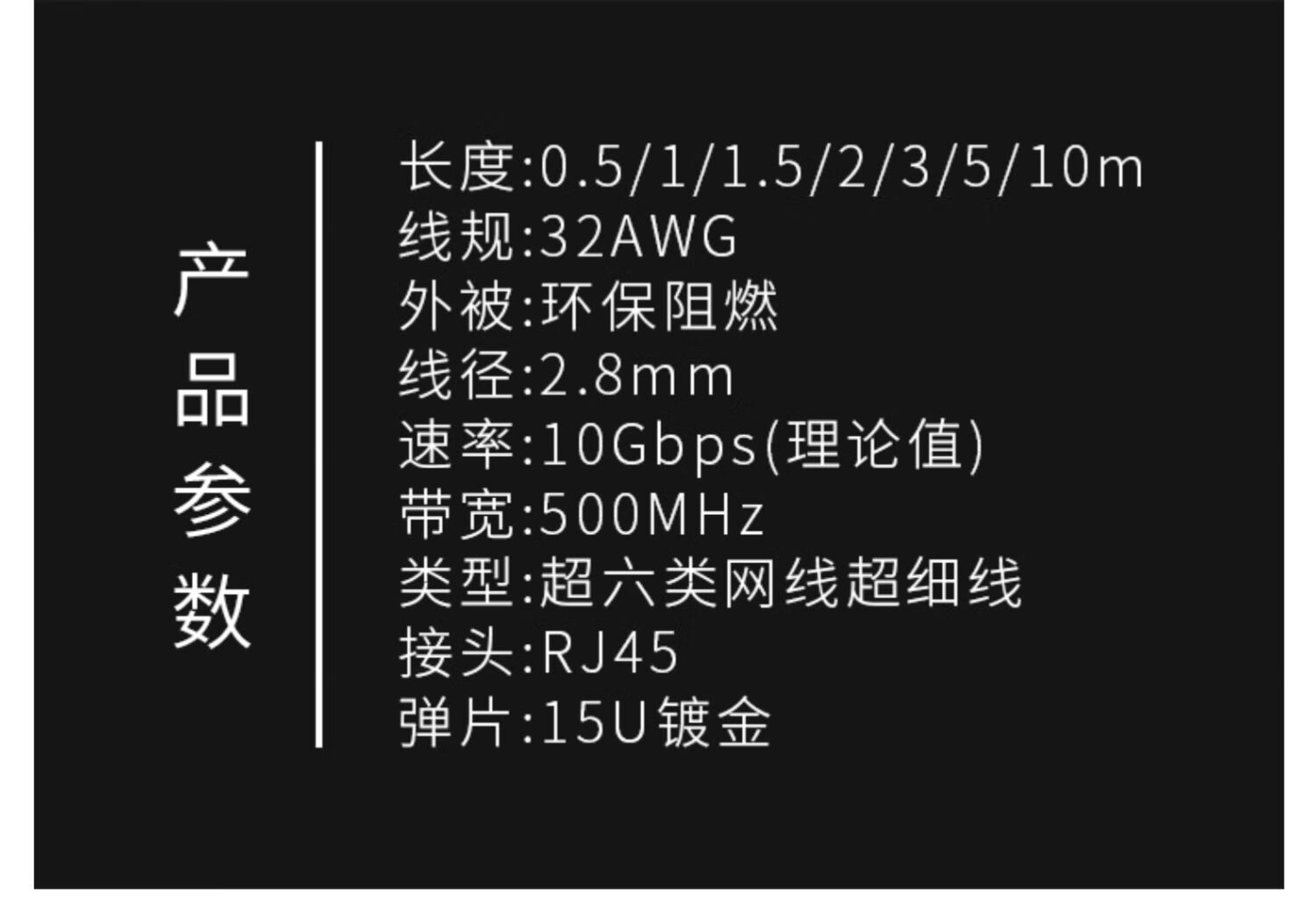 胜为 CAT6A非屏蔽超细PVC网络跳线 LC-9030G 无氧铜 雅典黑 3m 1条