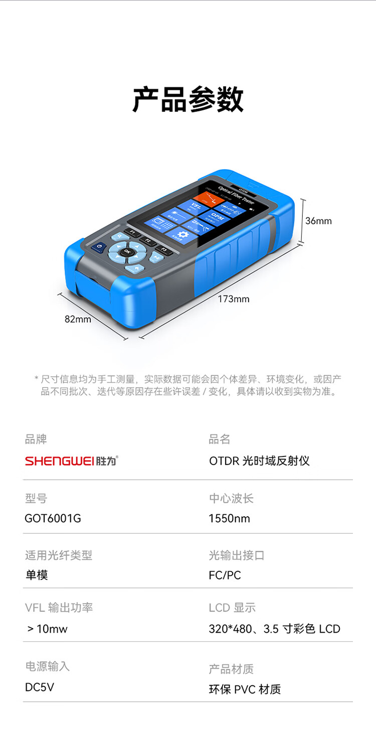 胜为 光时域反射仪 GOT6001G PVC材质 单模 1550nm DC5V 1台
