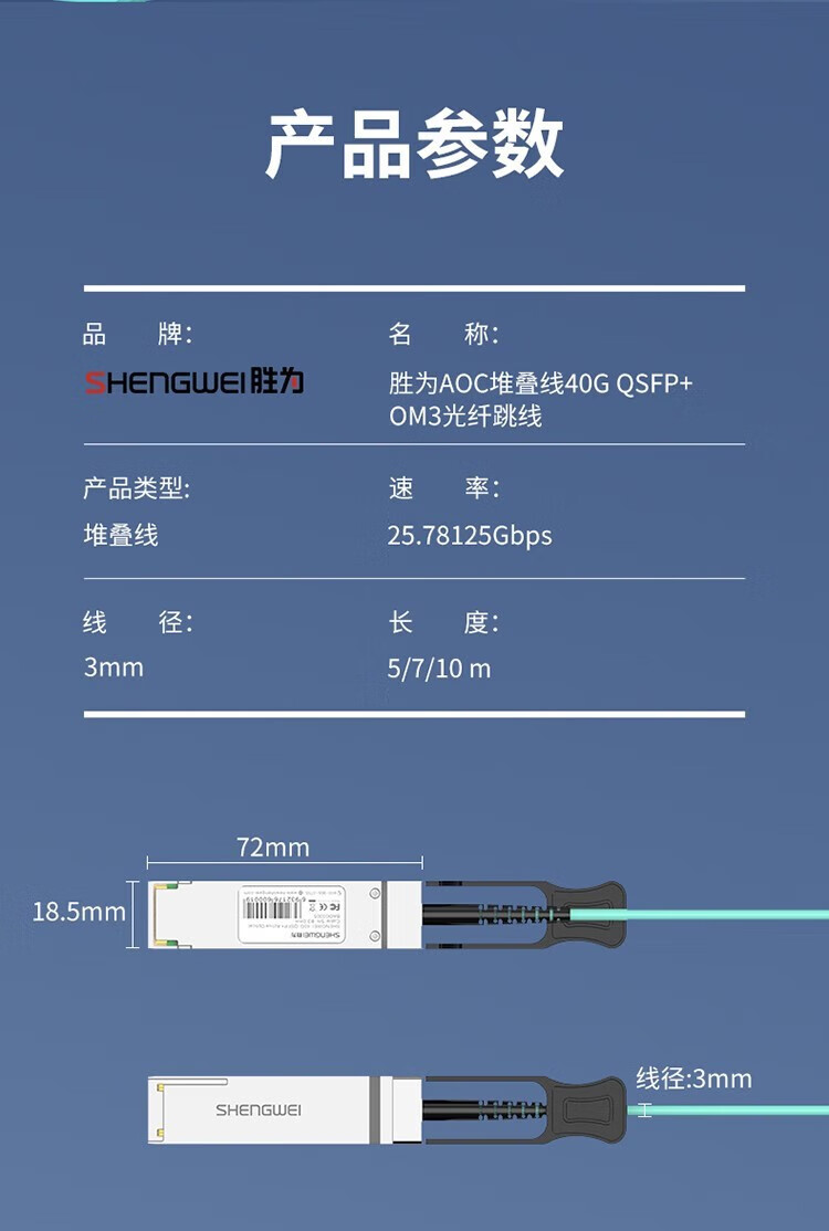 胜为 40G QSFP+AOC万兆堆叠线 BAOC0307 7m 1条