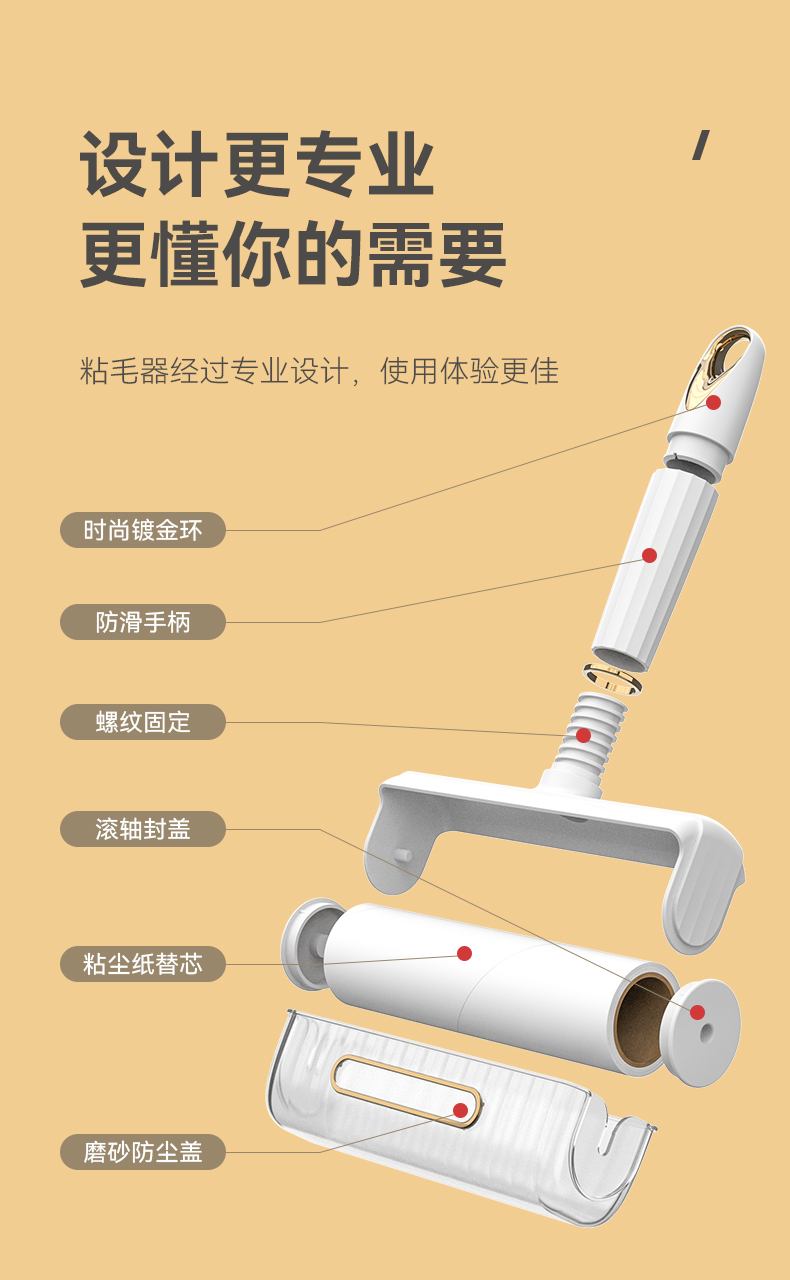 国产通用 强力可撕粘毛器 24CM白金手柄(送防尘罩)+7卷纸【共420撕】 1件
