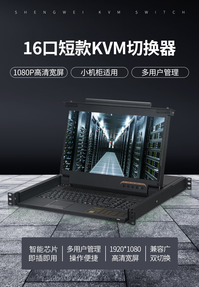 胜为 LCD系列KVM切换器 KS-2716L 17.3英寸 VGA接口短款 16进1出 1个