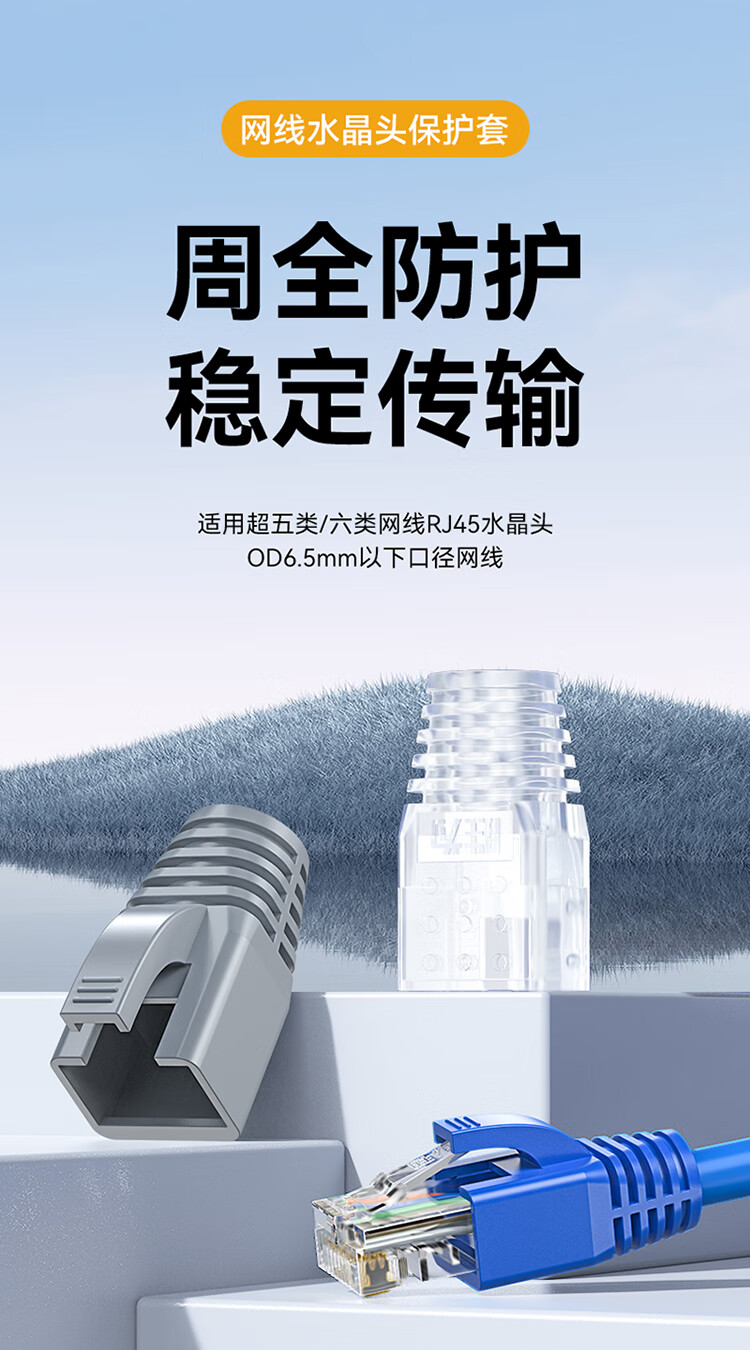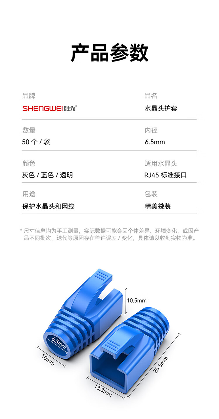 胜为 超五类六类网线RJ45水晶头护套 CHT6050G 环保PVC 灰色 内径6.5mm 50个 1包