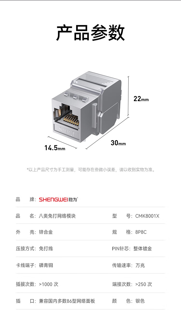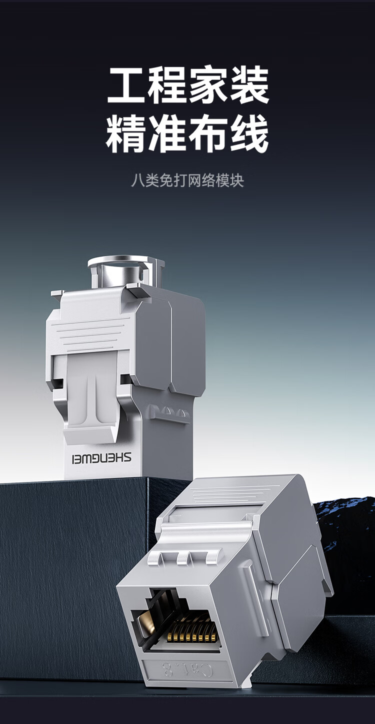 胜为 RJ45型8P8C八类万兆免打模块屏蔽 CMK8001X 锌合金 银色 1个