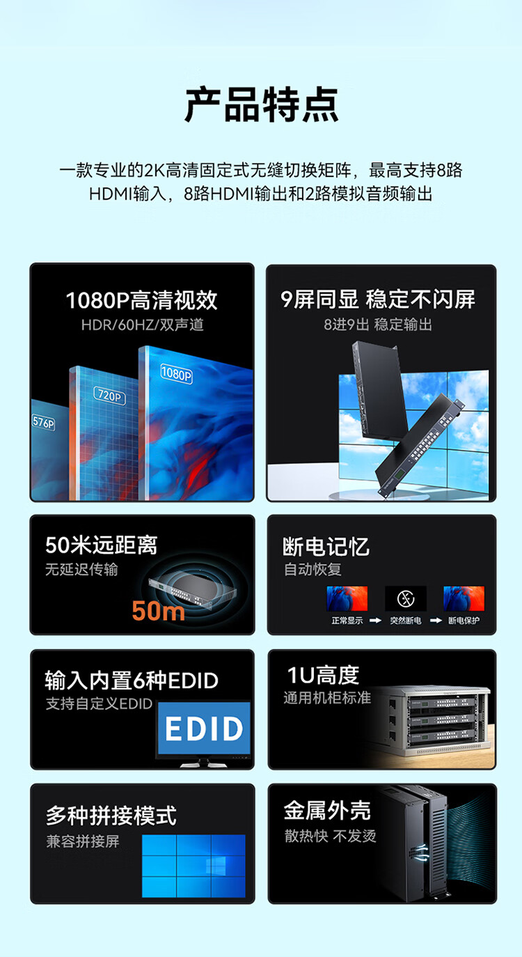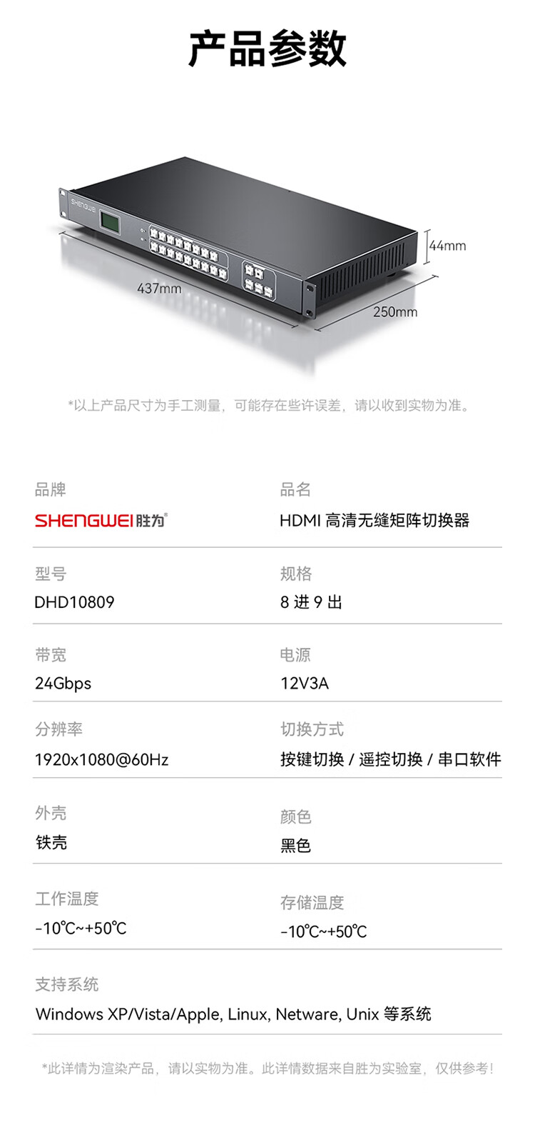 胜为 HDMI矩阵切换器 DHD10809 8进9出 1个