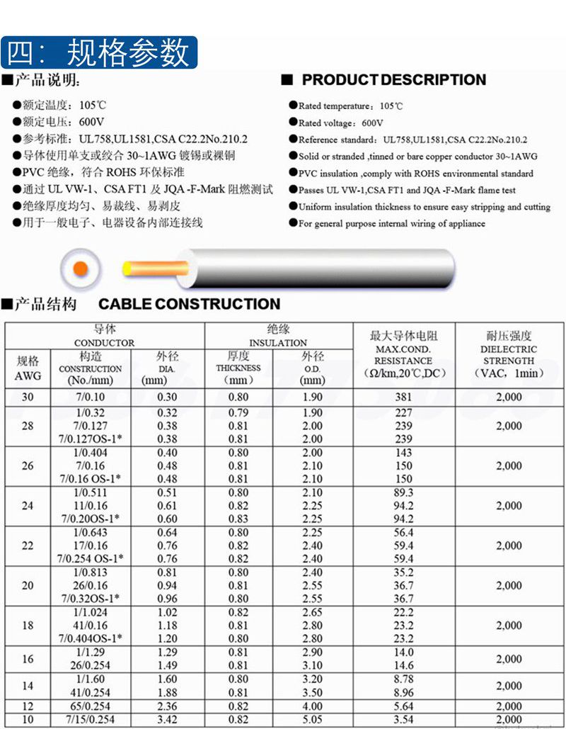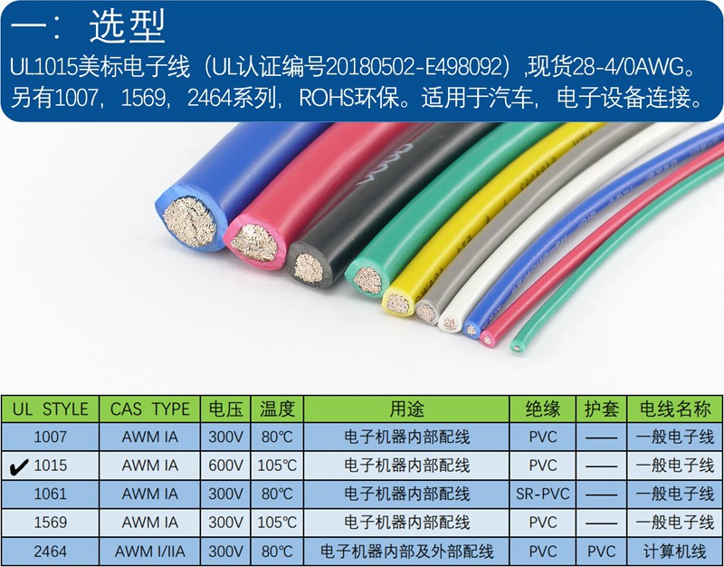 UL1015 12AWG 美标电子线 黑色