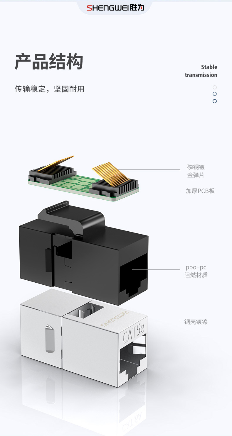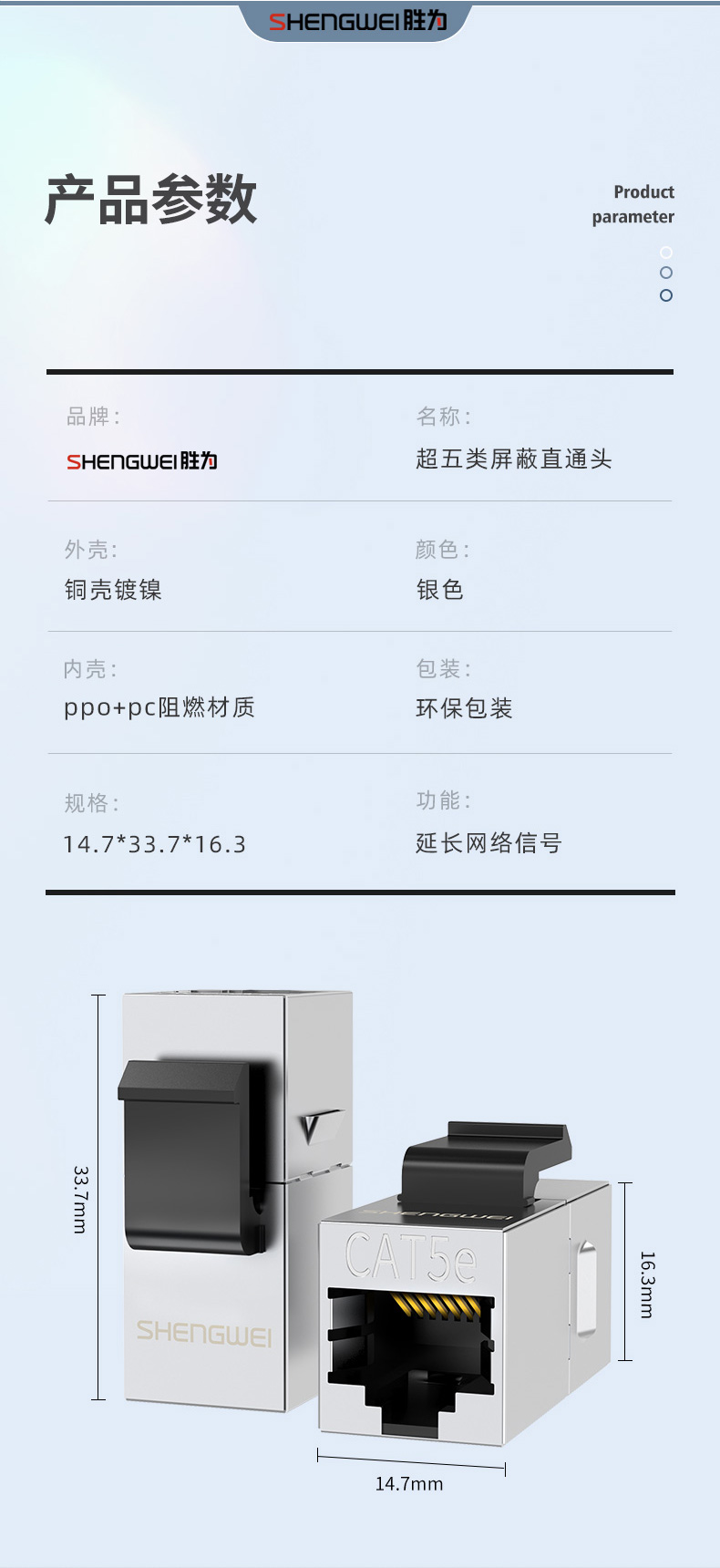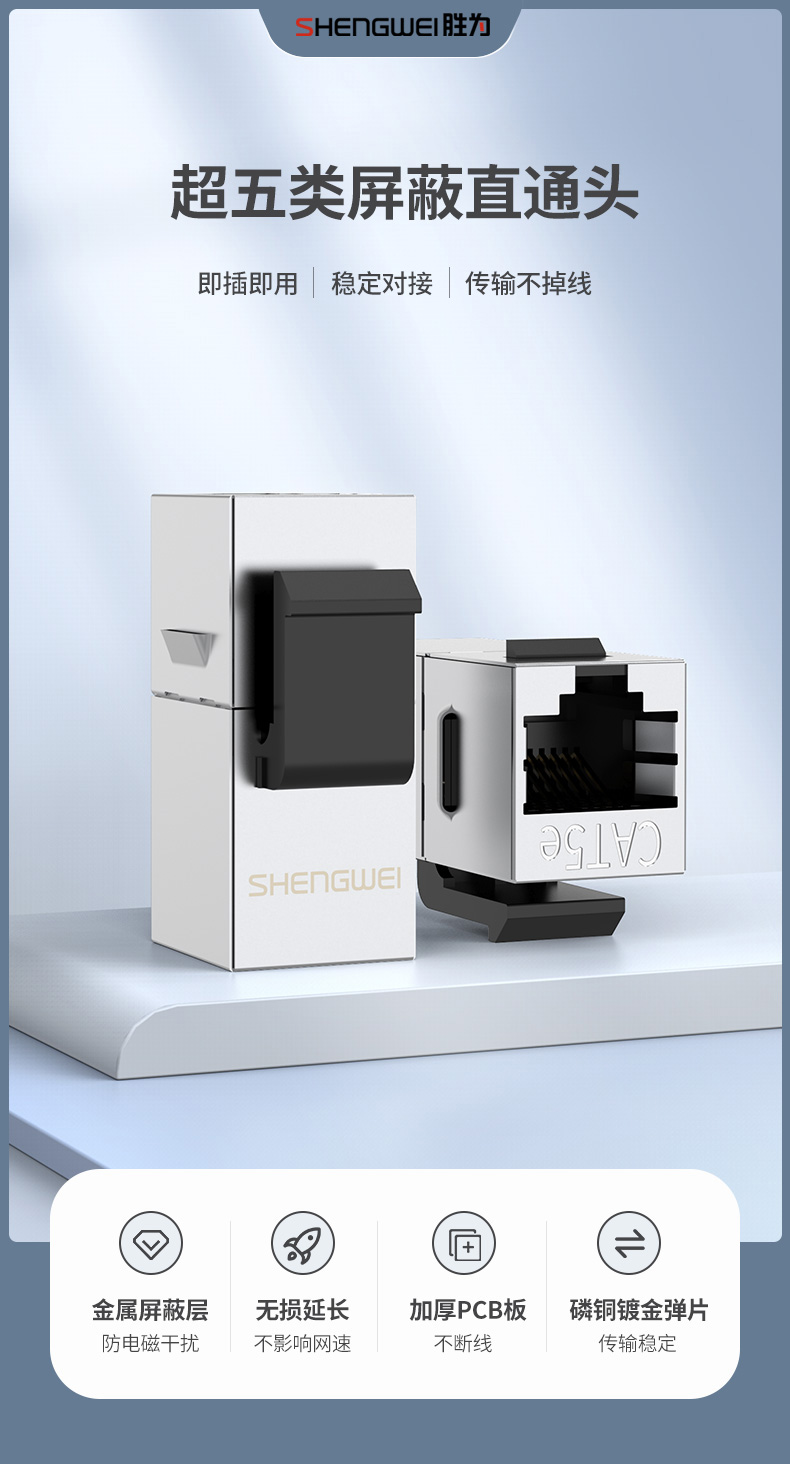 胜为 RJ45型8P8C超五类百兆直通模块屏蔽 CMK5002X 铜镀镍外壳 银色 1个