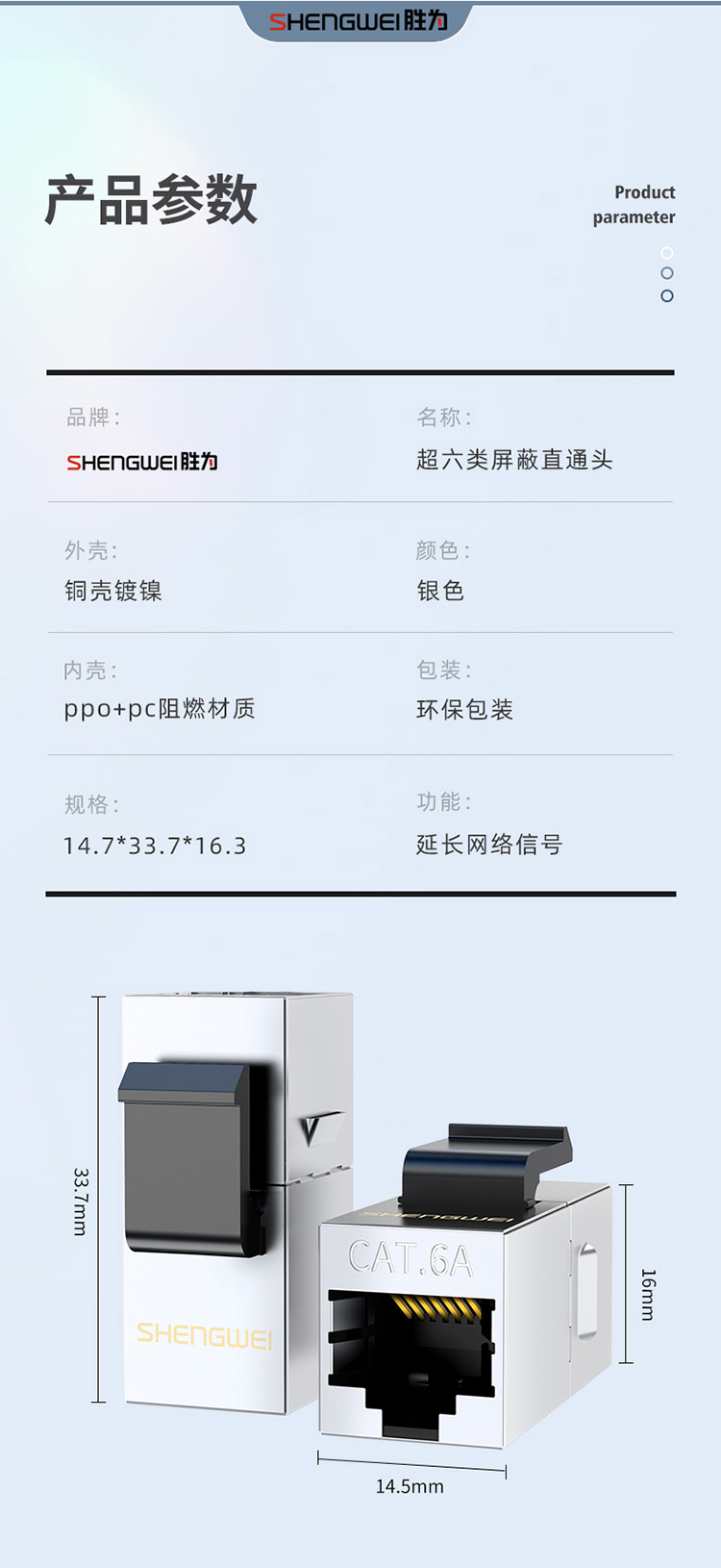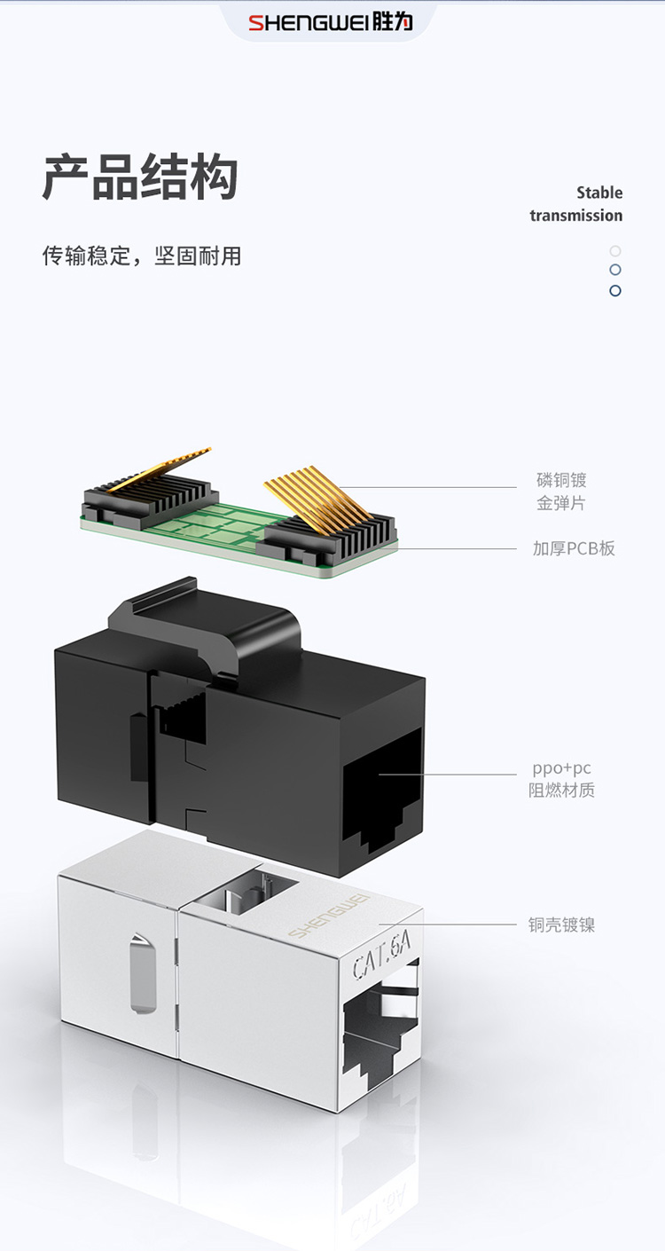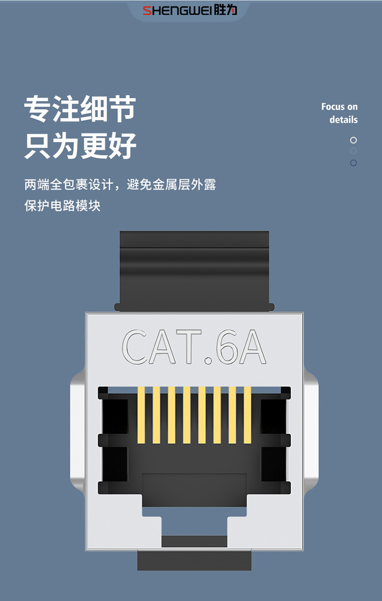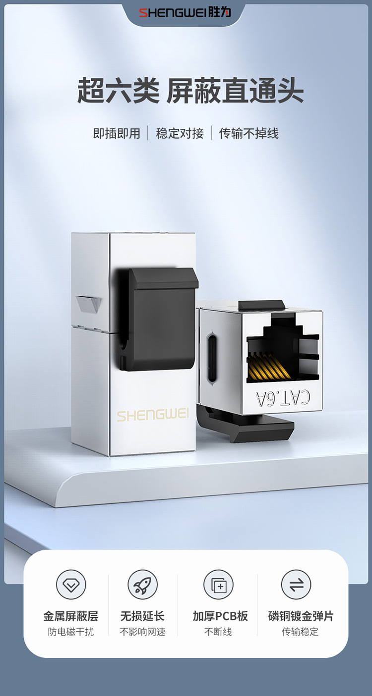 胜为 RJ45型8P8C超六类万兆直通模块屏蔽 CMK6A02X 铜镀镍外壳 银色 1个