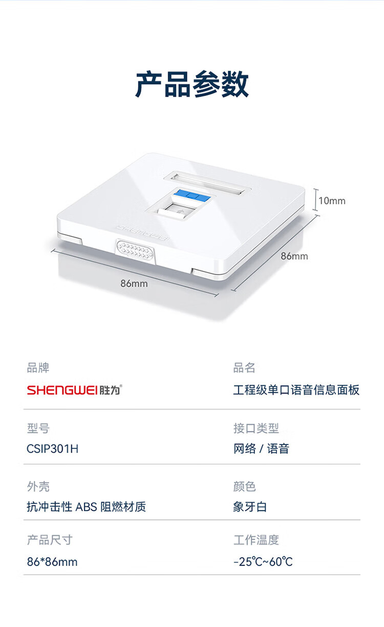 胜为 通用86型网络/电话空板 CSIP301H ABS 单口 1个