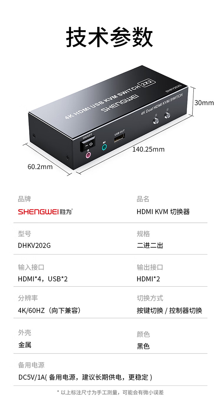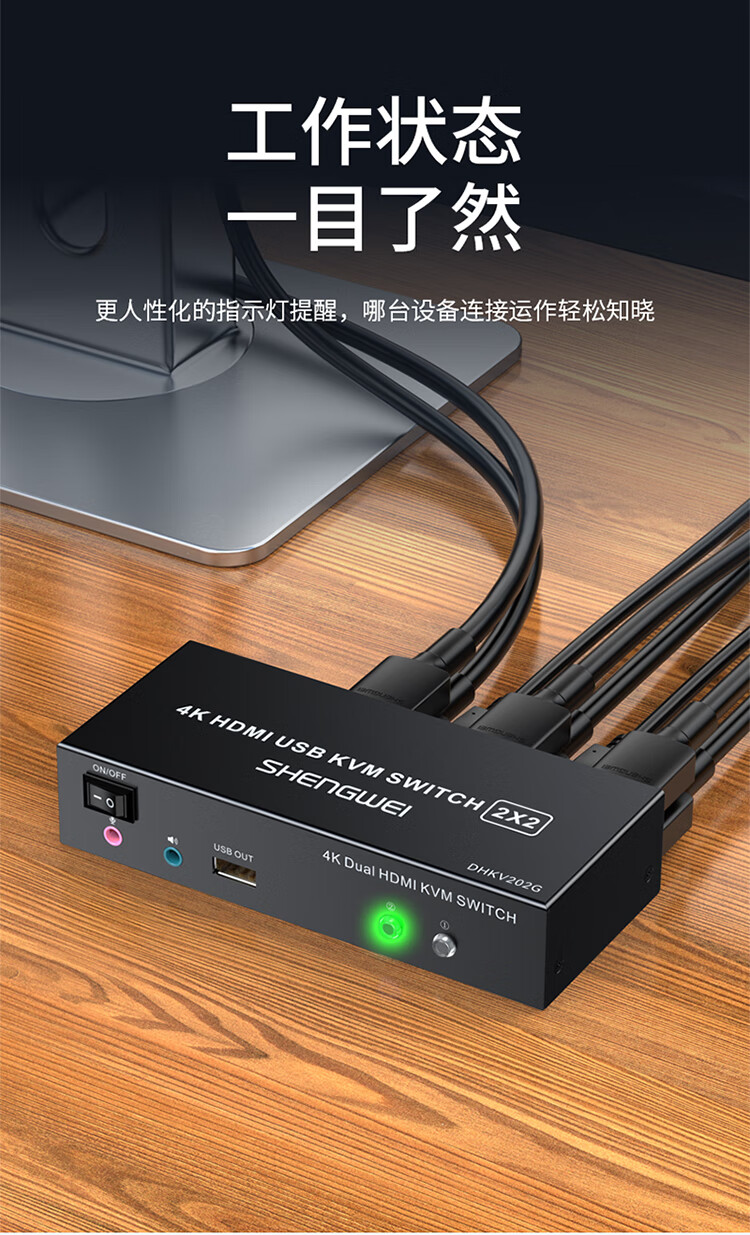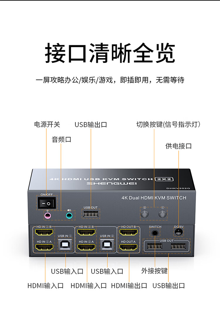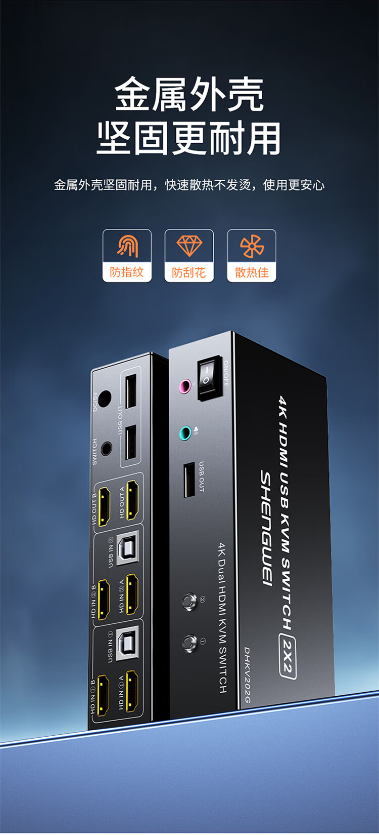 胜为 HDMI KVM切换器 DHKV202G 2进2出 1个
