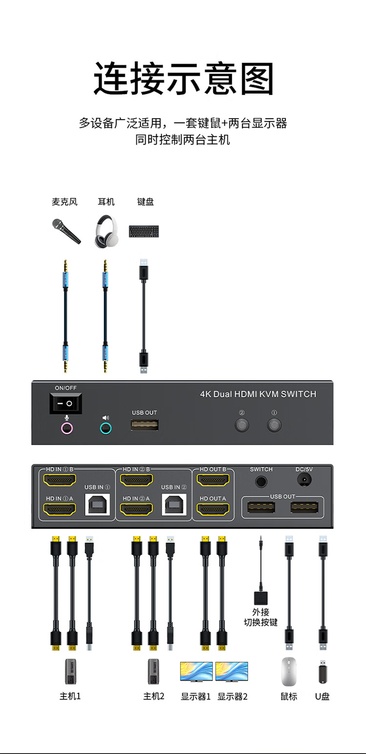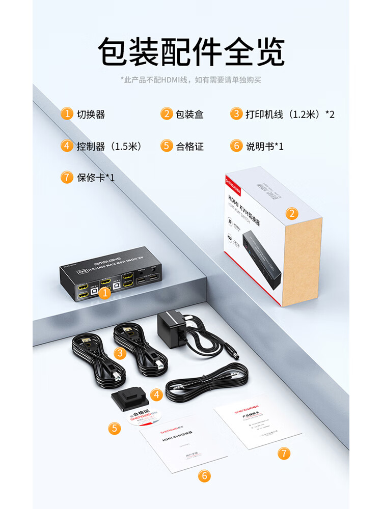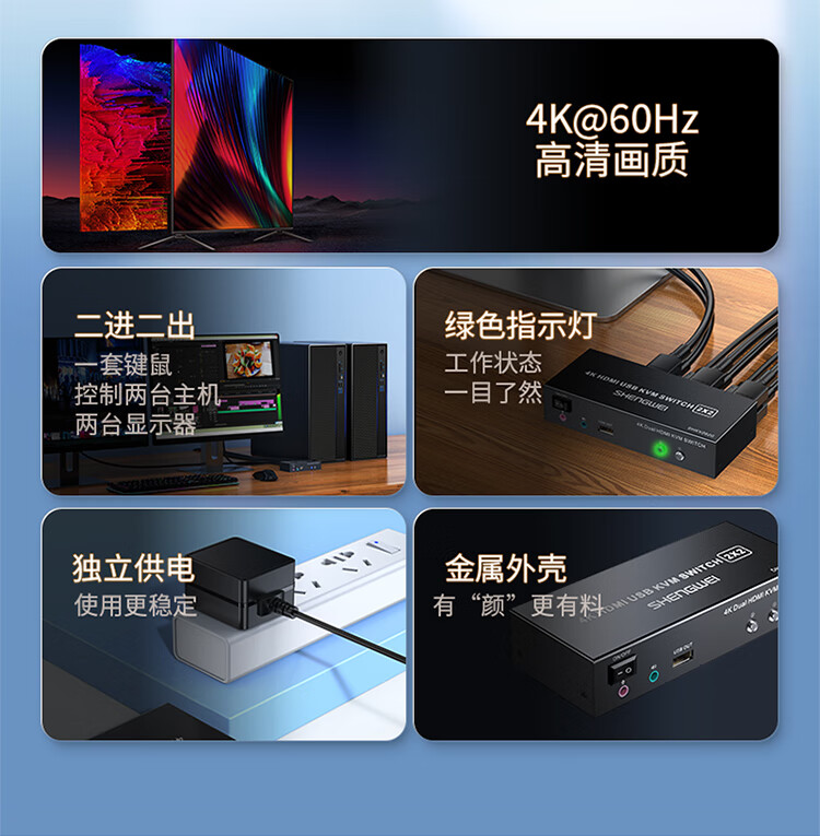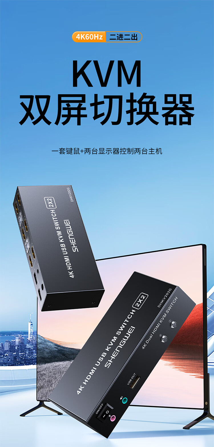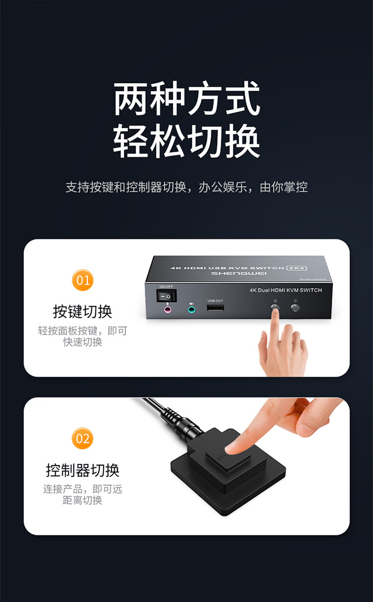 胜为 HDMI KVM切换器 DHKV202G 2进2出 1个