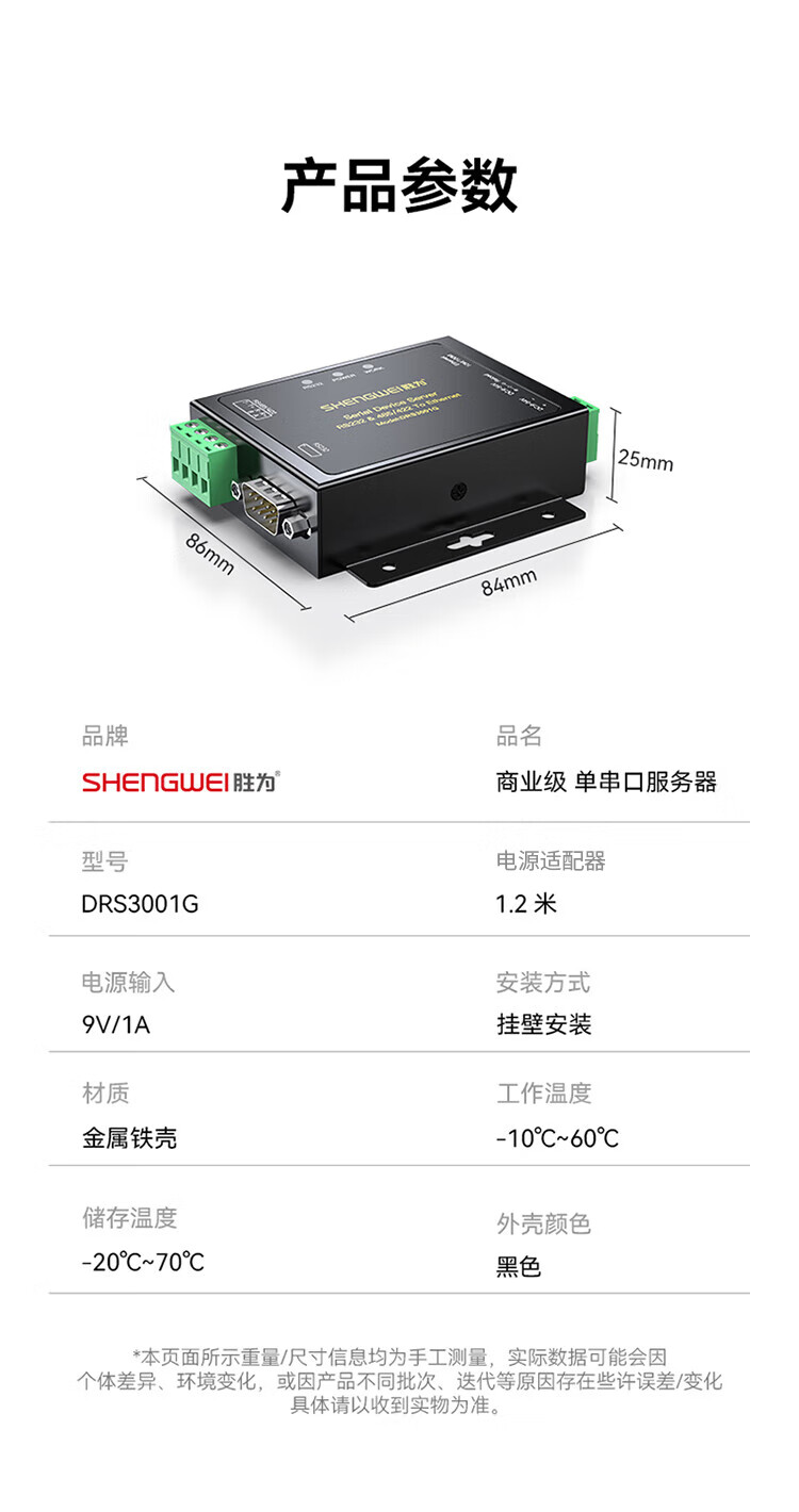 胜为 商业级单串口服务器 DRS3001G 1台