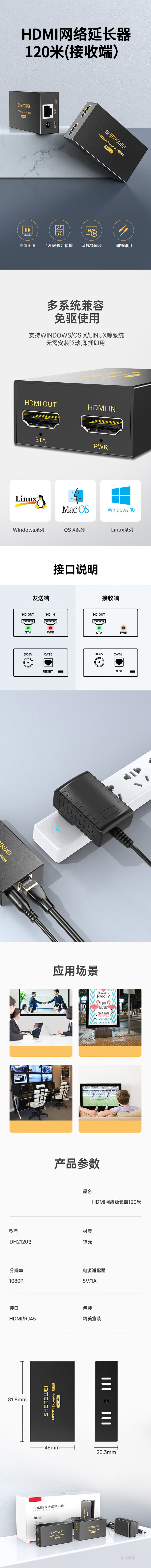 胜为 HDMI延长器 DH2120B 接收端 120m 1个