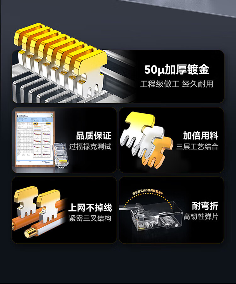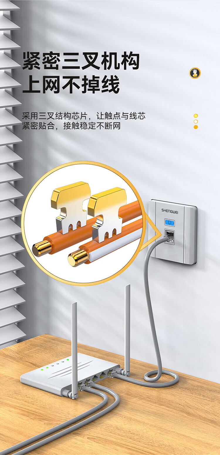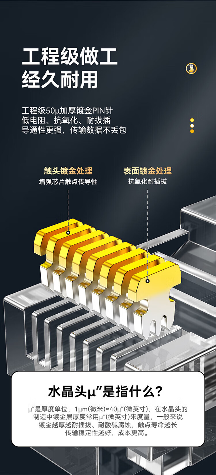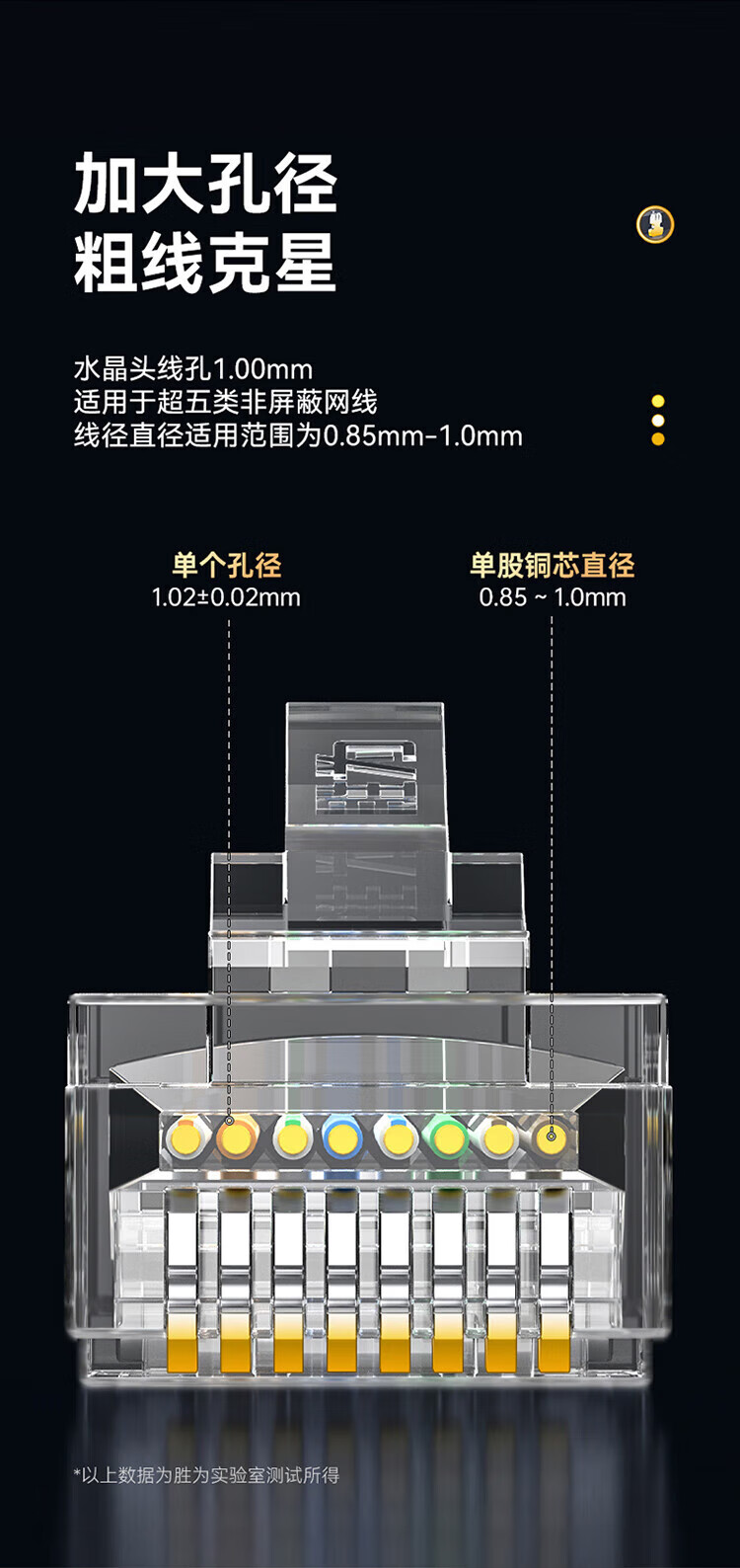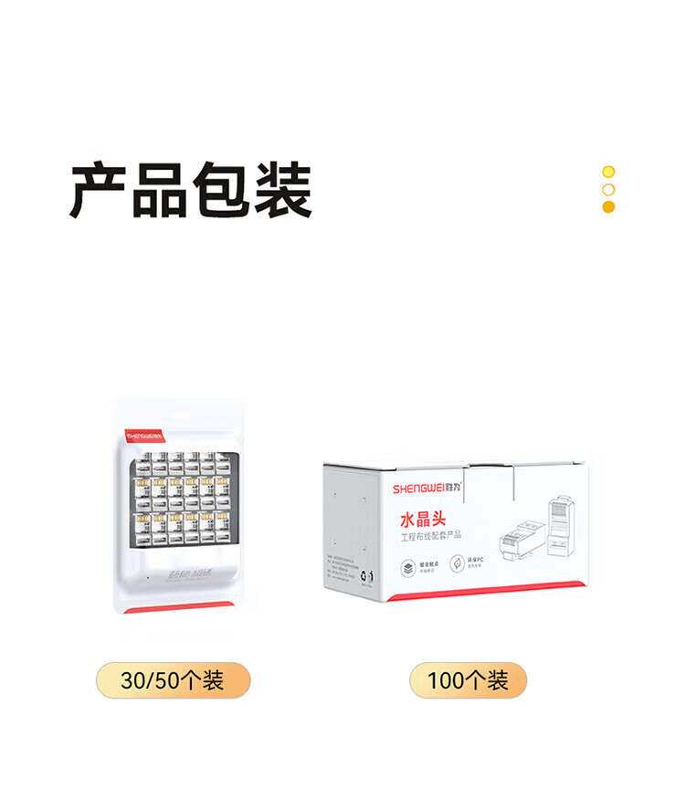 胜为 超五类网络水晶头3μ CRJ5030U RJ45型 8P8C 三叉镀金3U 30个 1袋