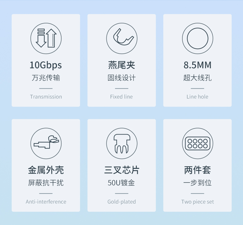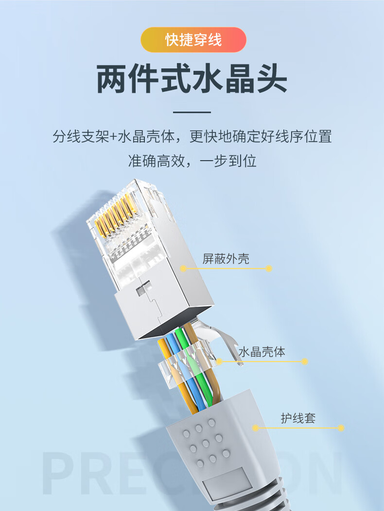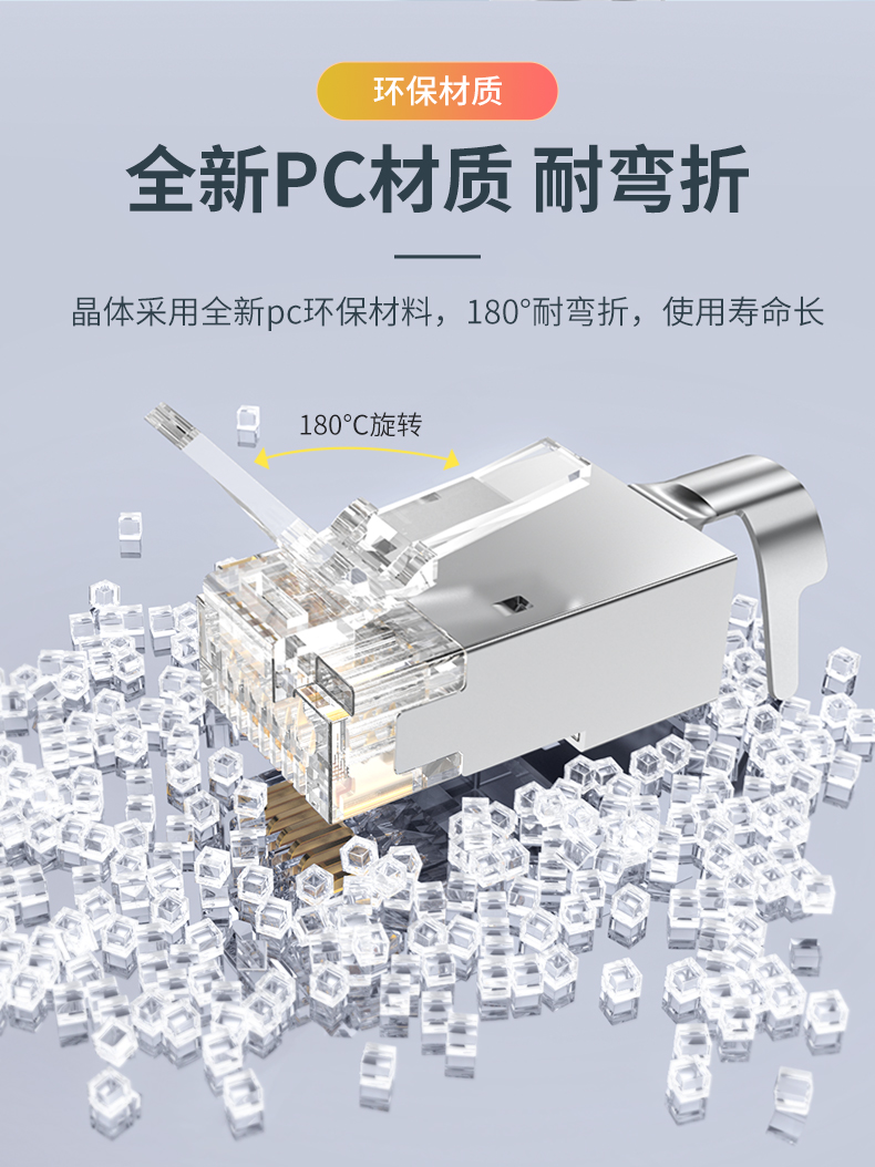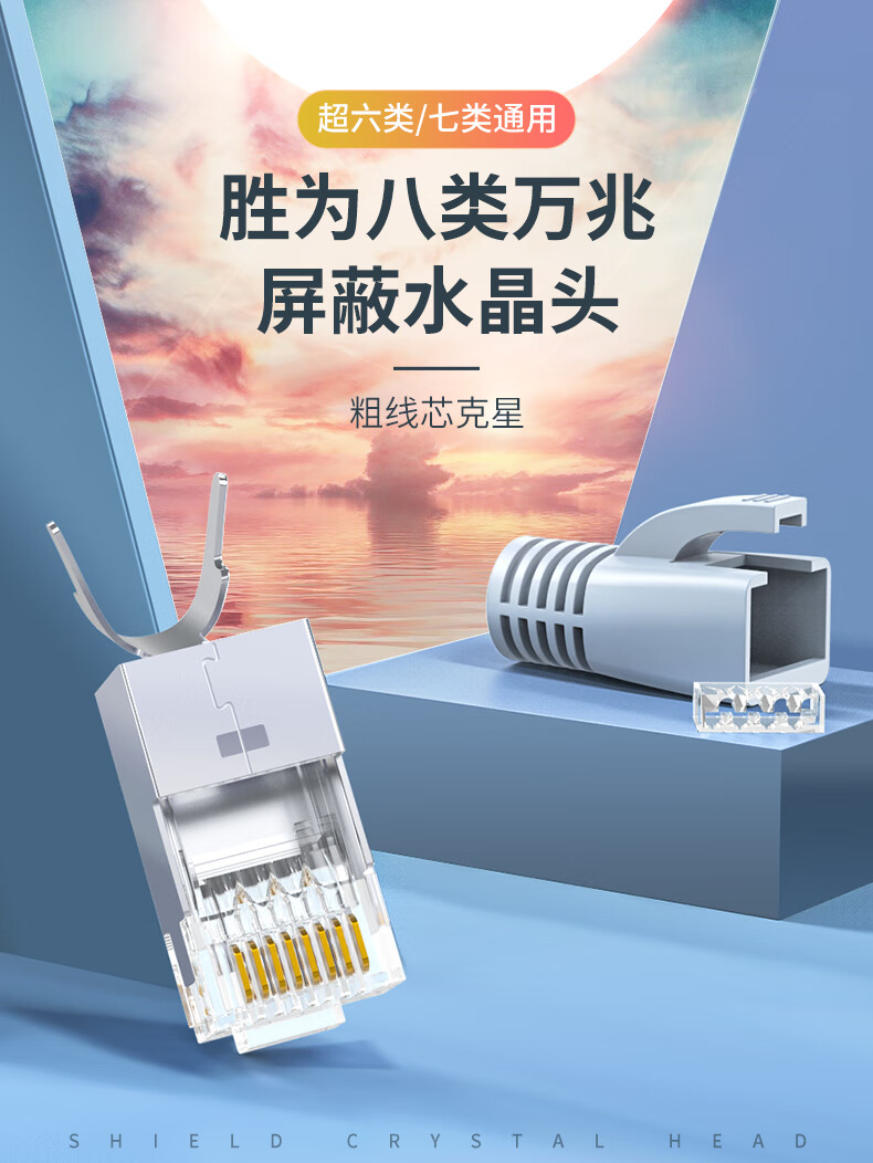 胜为 超五类屏蔽水晶头 CRJ5100P 3U加厚镀金 100个 1盒