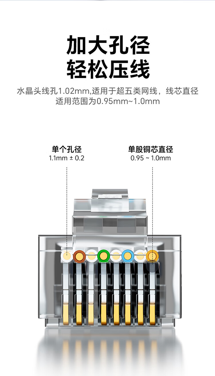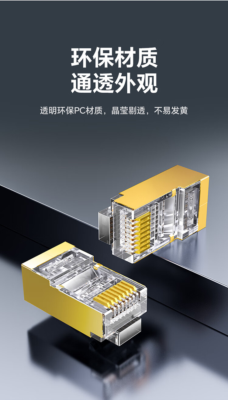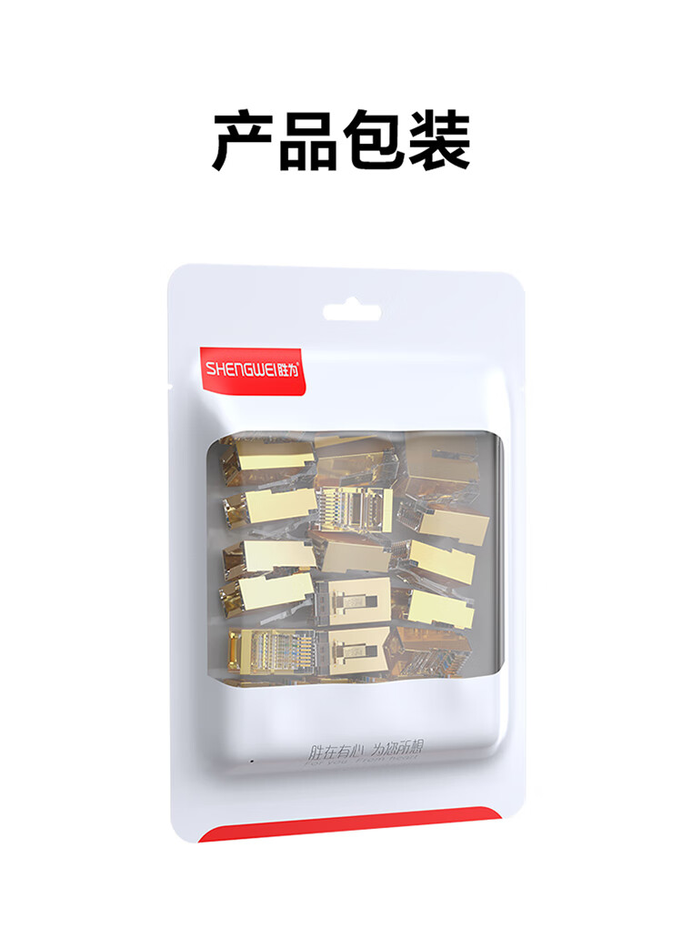 胜为 超五类屏蔽水晶头 CRF5002F 3U加厚镀金 2个 1袋