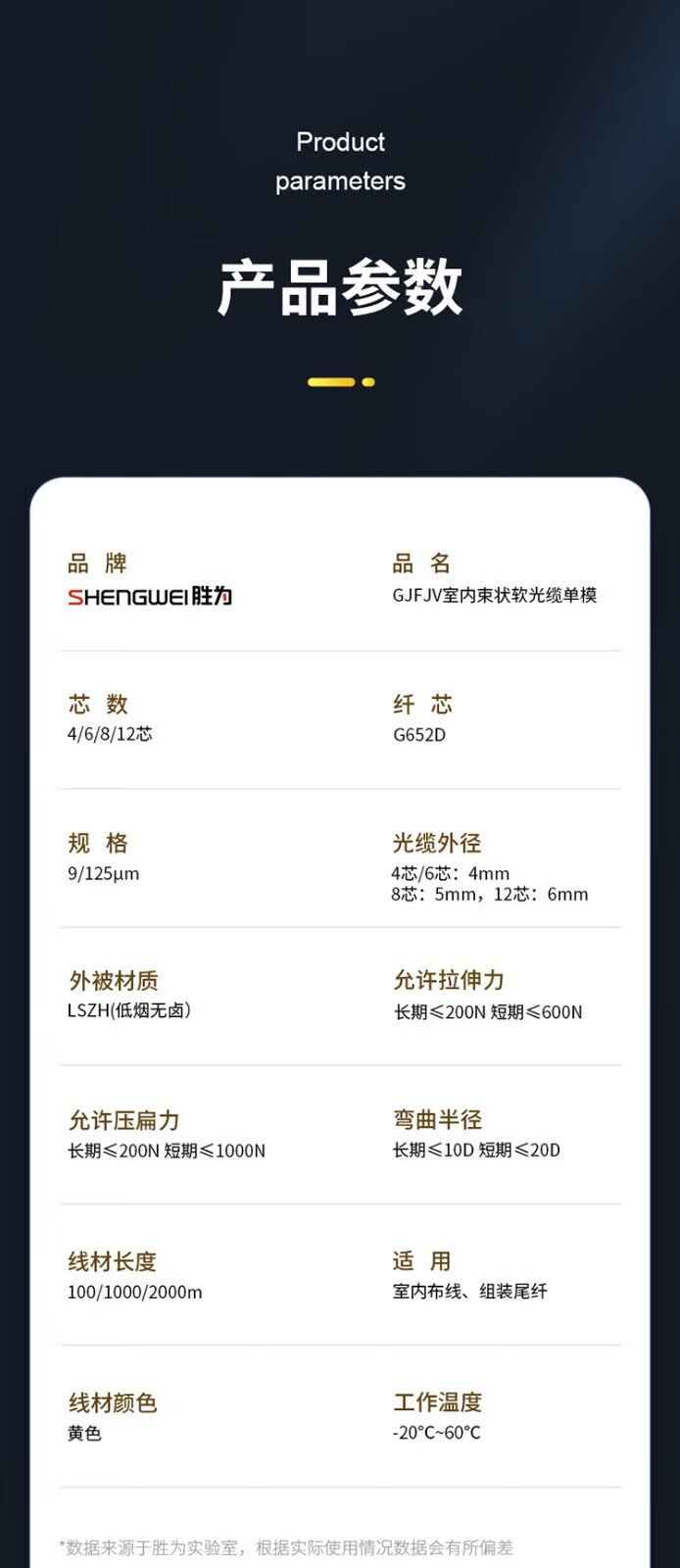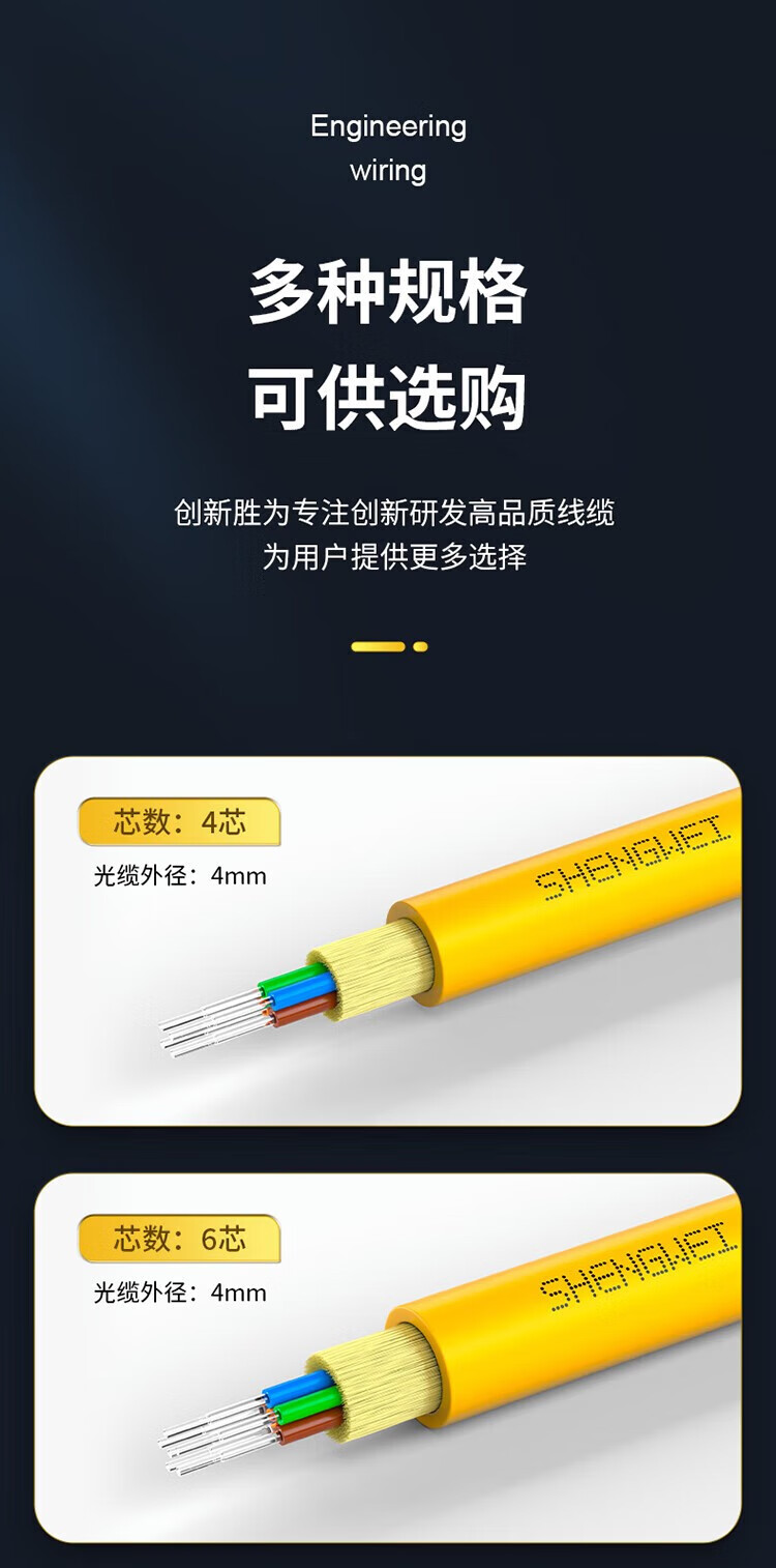 胜为 GJFJV室内单模束状光缆 FSM-IH-24C-9 黄色 线径8.5mm 24芯 9/125 100m 1卷