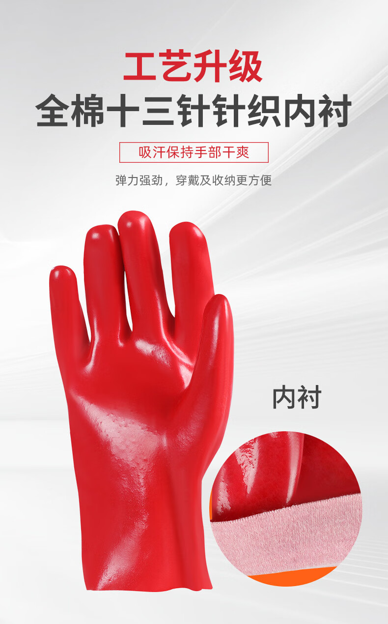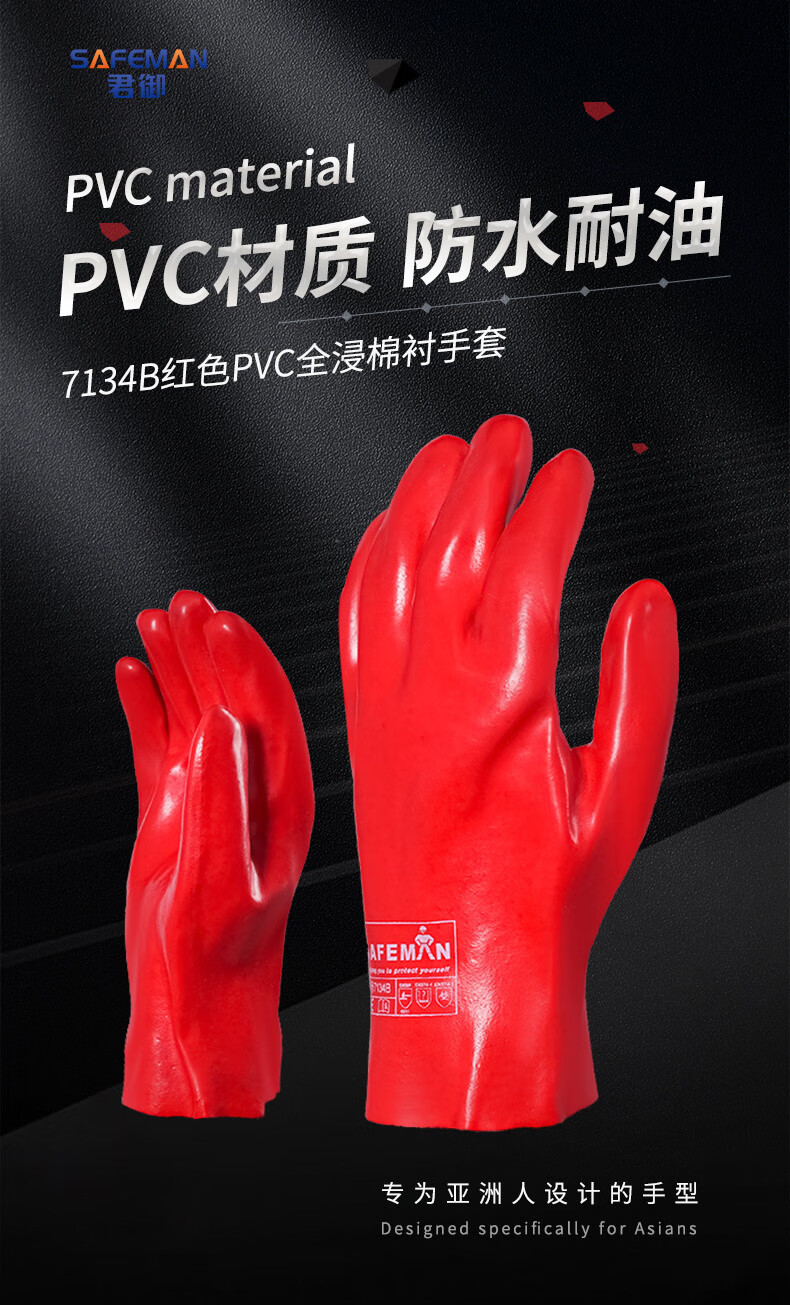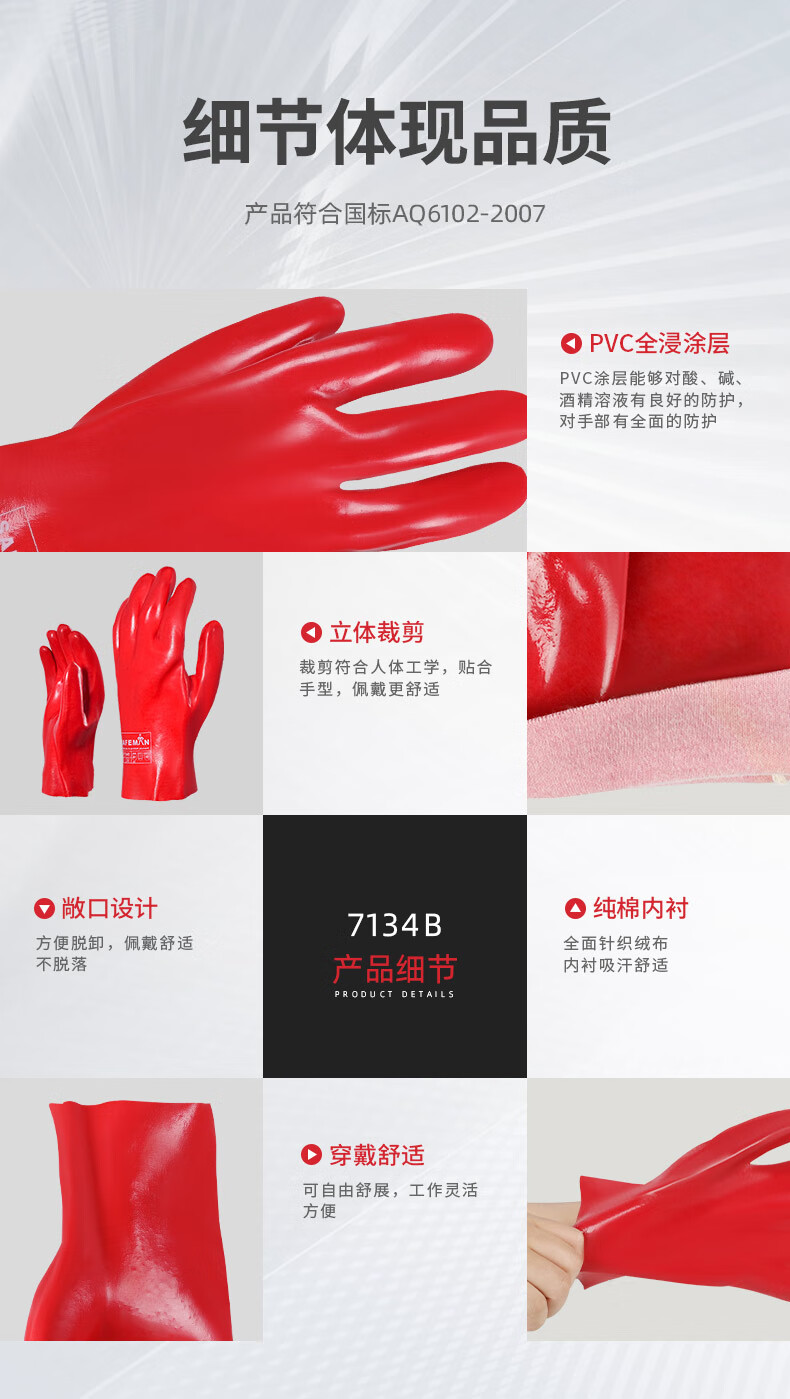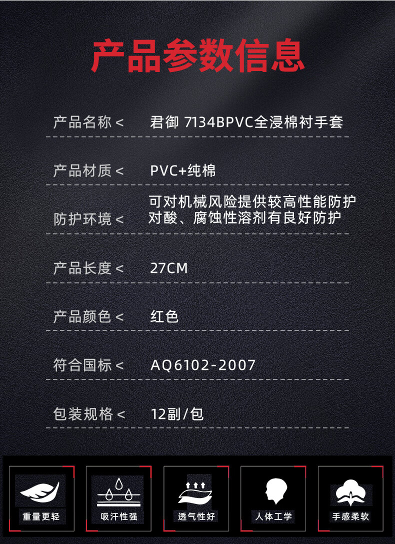 君御 红色PVC全浸棉衬手套 7134B 红色 1双