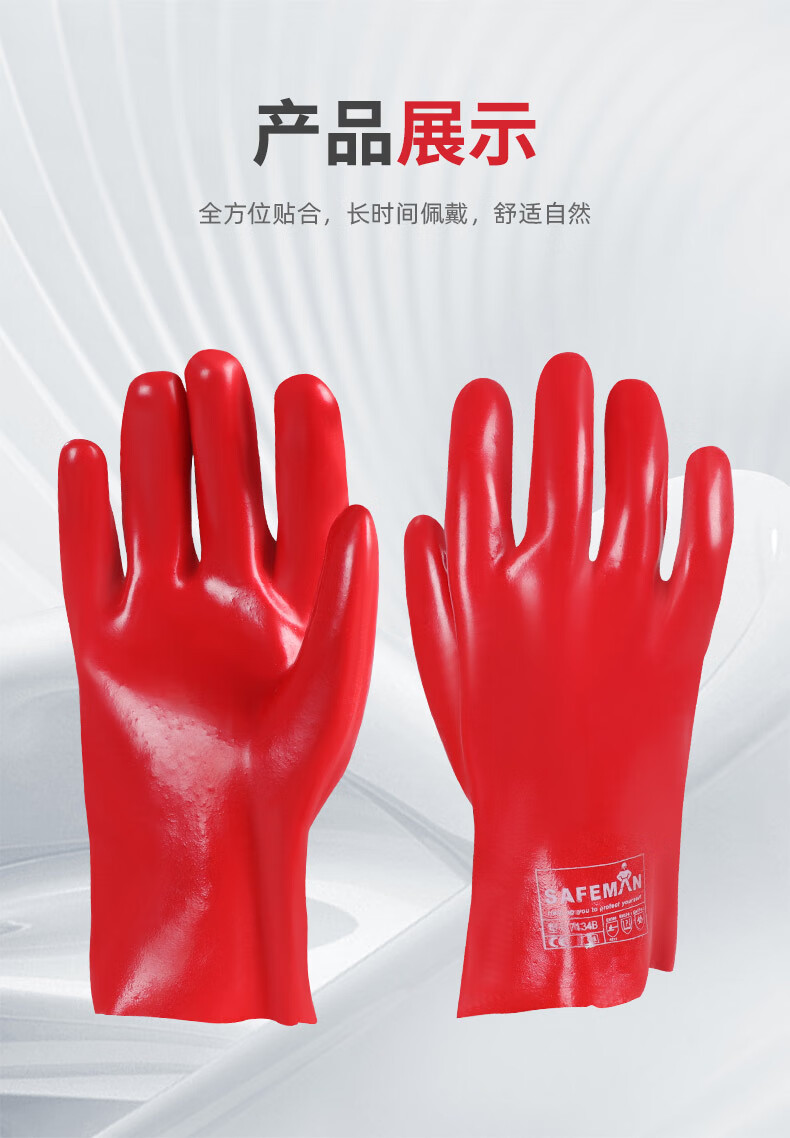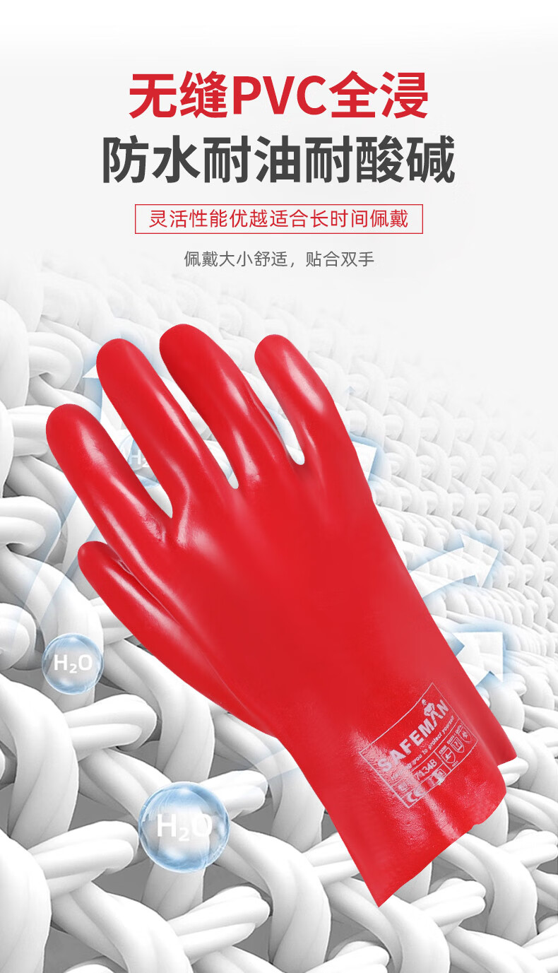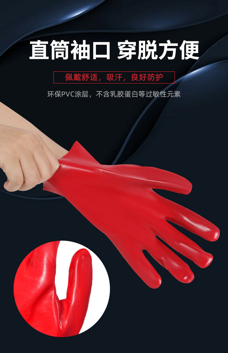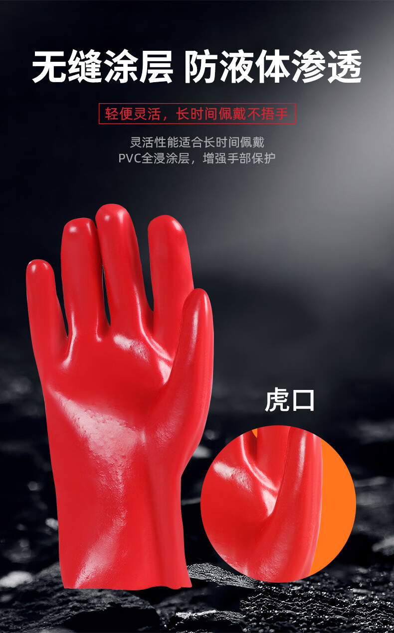 君御 红色PVC全浸棉衬手套 7134B 红色 1双