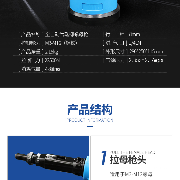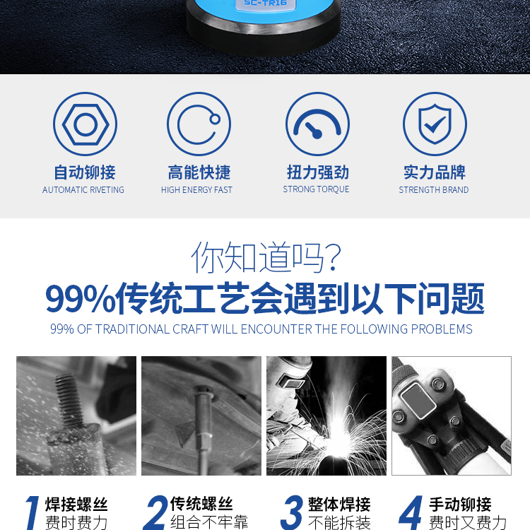 SCHUTRER 全自动气动拉铆枪 SC-TR16 8mm 22500N M3-M12配齐 1个