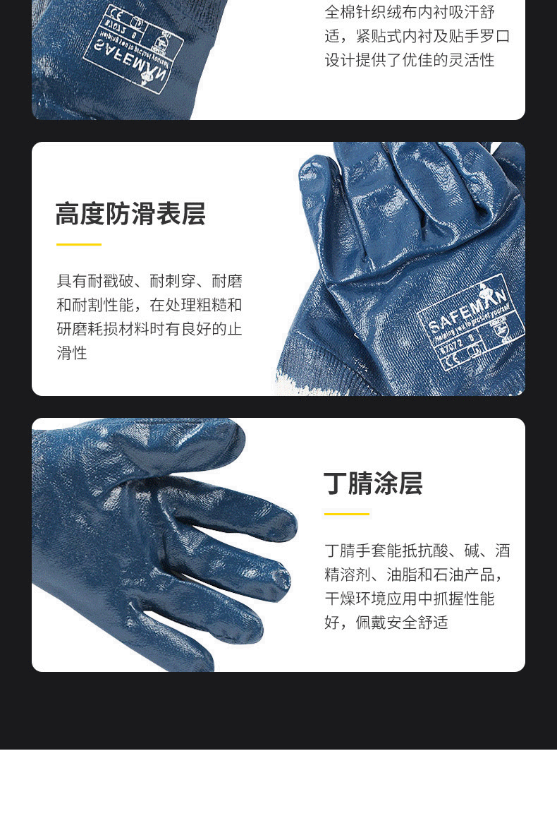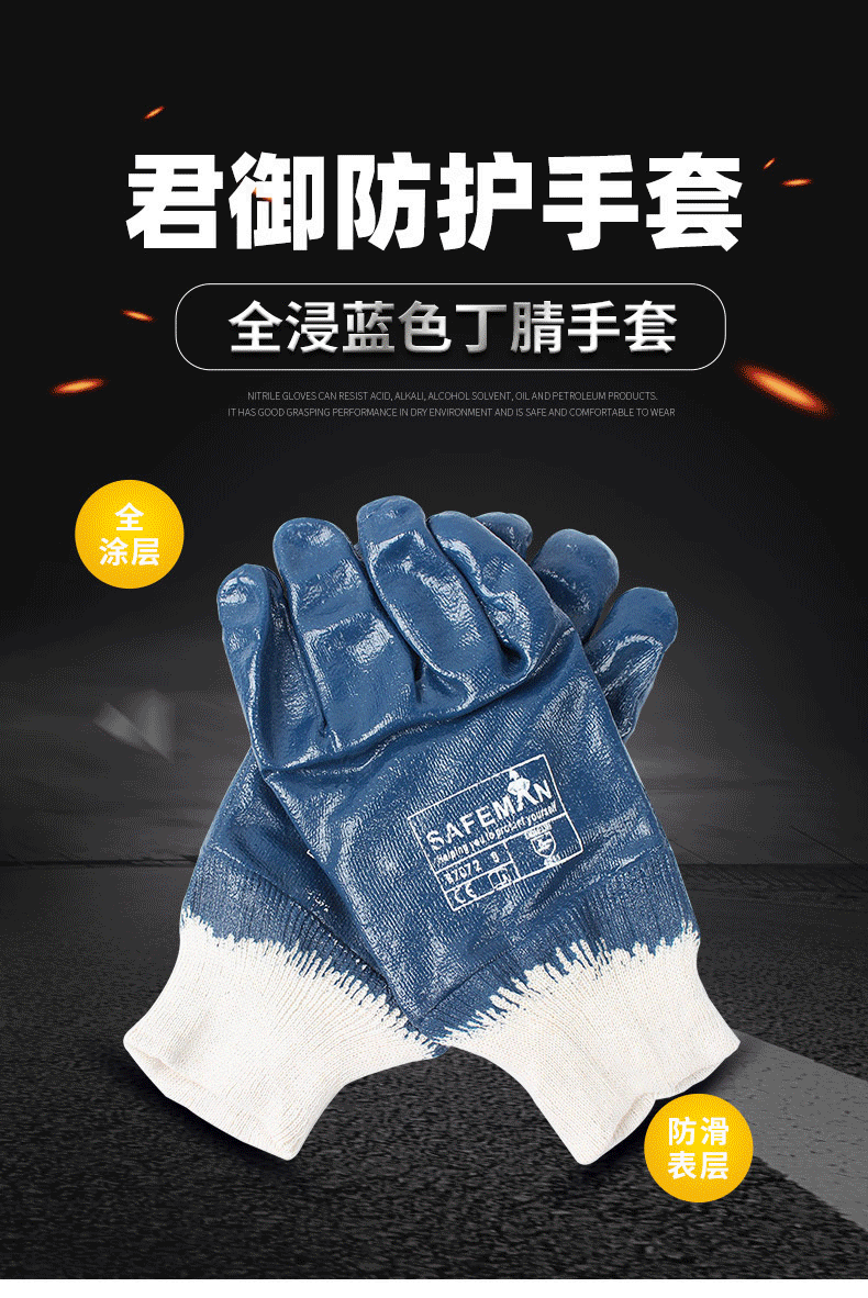 君御 丁腈手套 B7072 蓝色 8码 1双