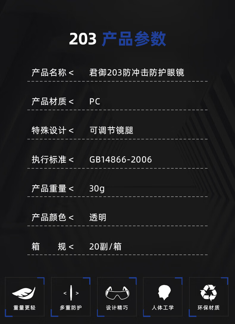 君御 203标准型防冲击眼镜 203 透明PC 1个