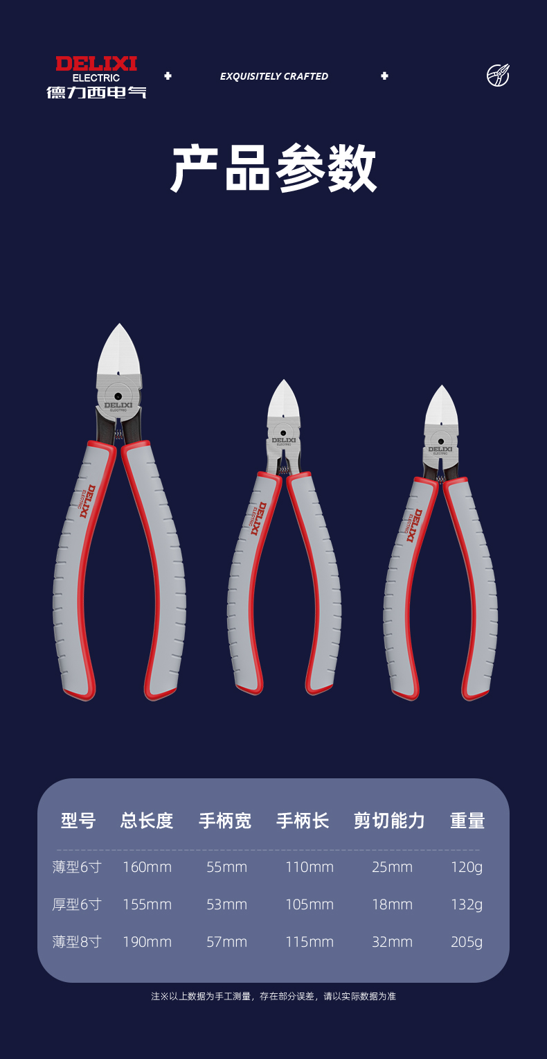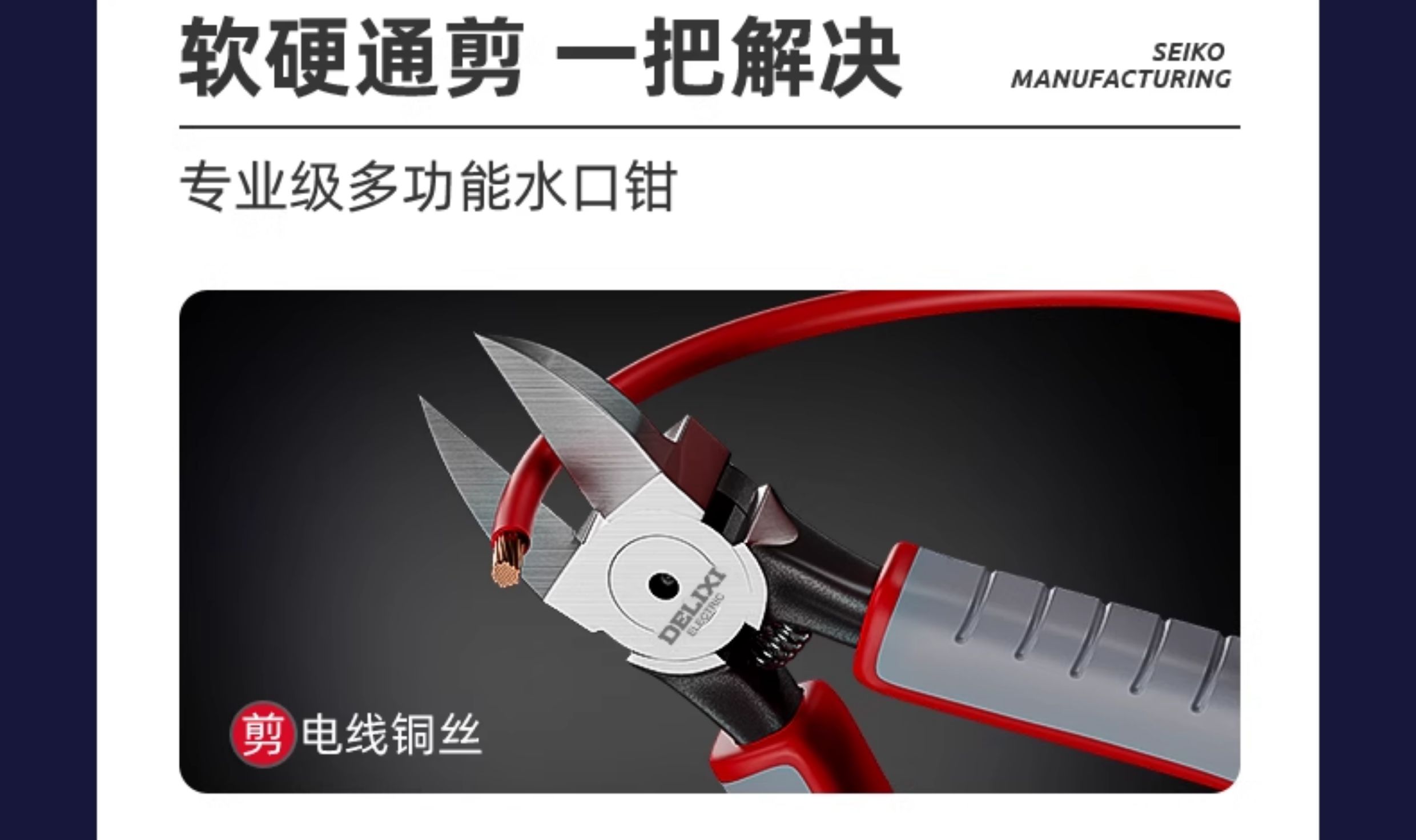 德力西电气 CR-铬钒钢水口钳 薄款 8寸 1个