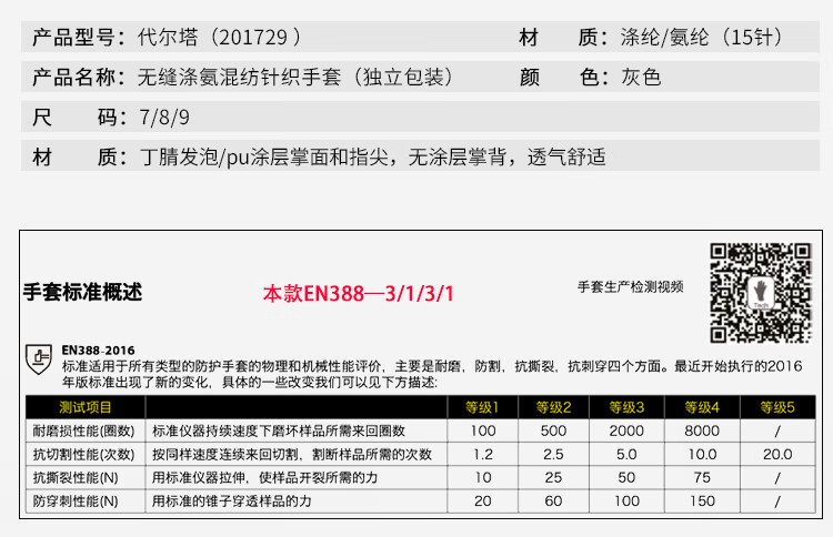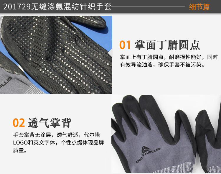 代尔塔 丁腈发泡/PU点塑手套 201729 9号 1双
