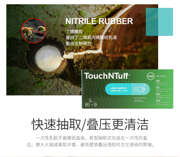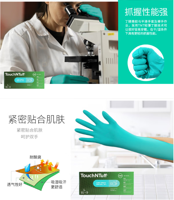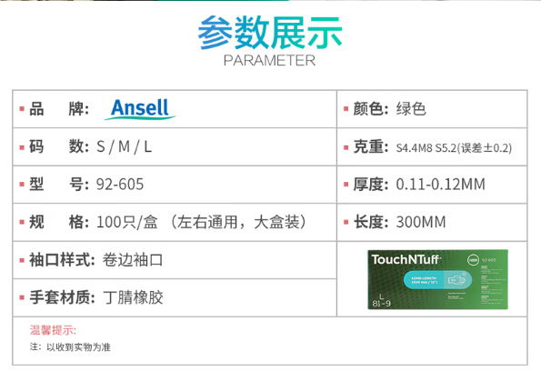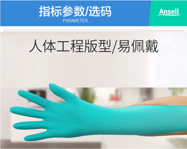 安思尔 丁腈防化手套 92605 XL码 100只 1盒