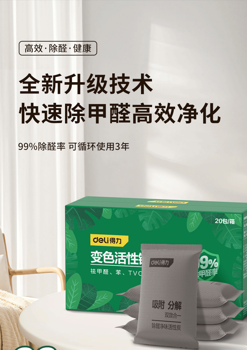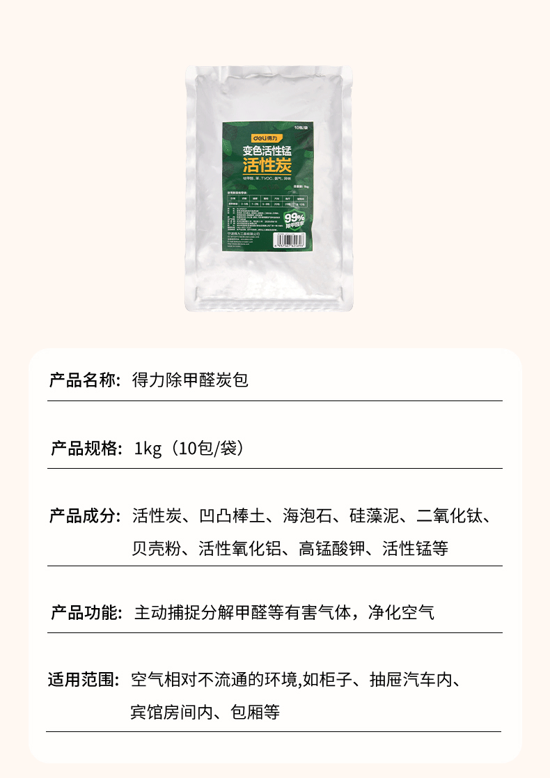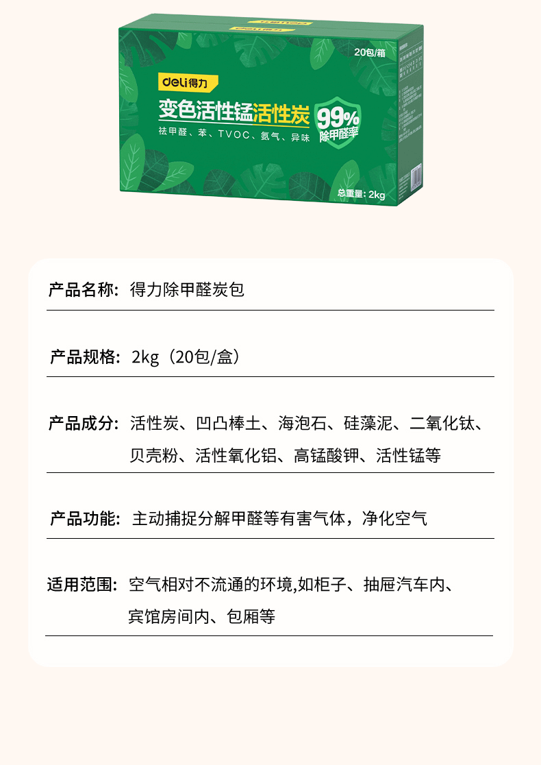 得力 除甲醛炭包 DL945038 2kg 黑色 20包 1箱