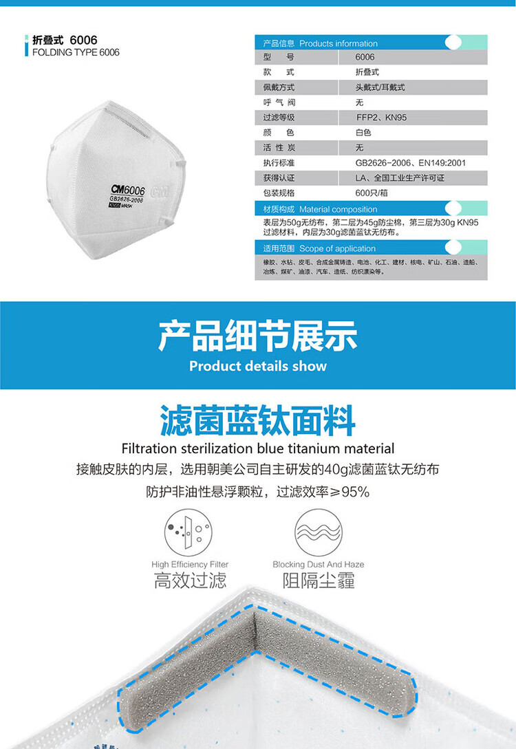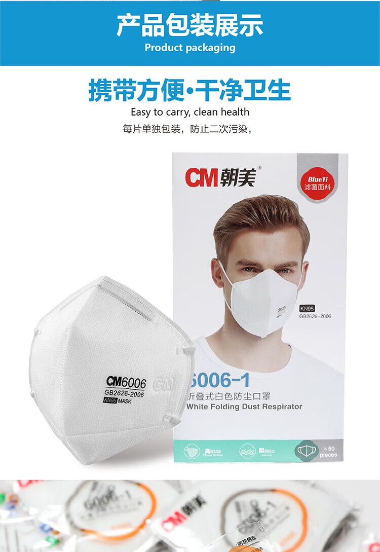 朝美 KN95防护口罩 6006-1 折叠耳挂式 白色 1只