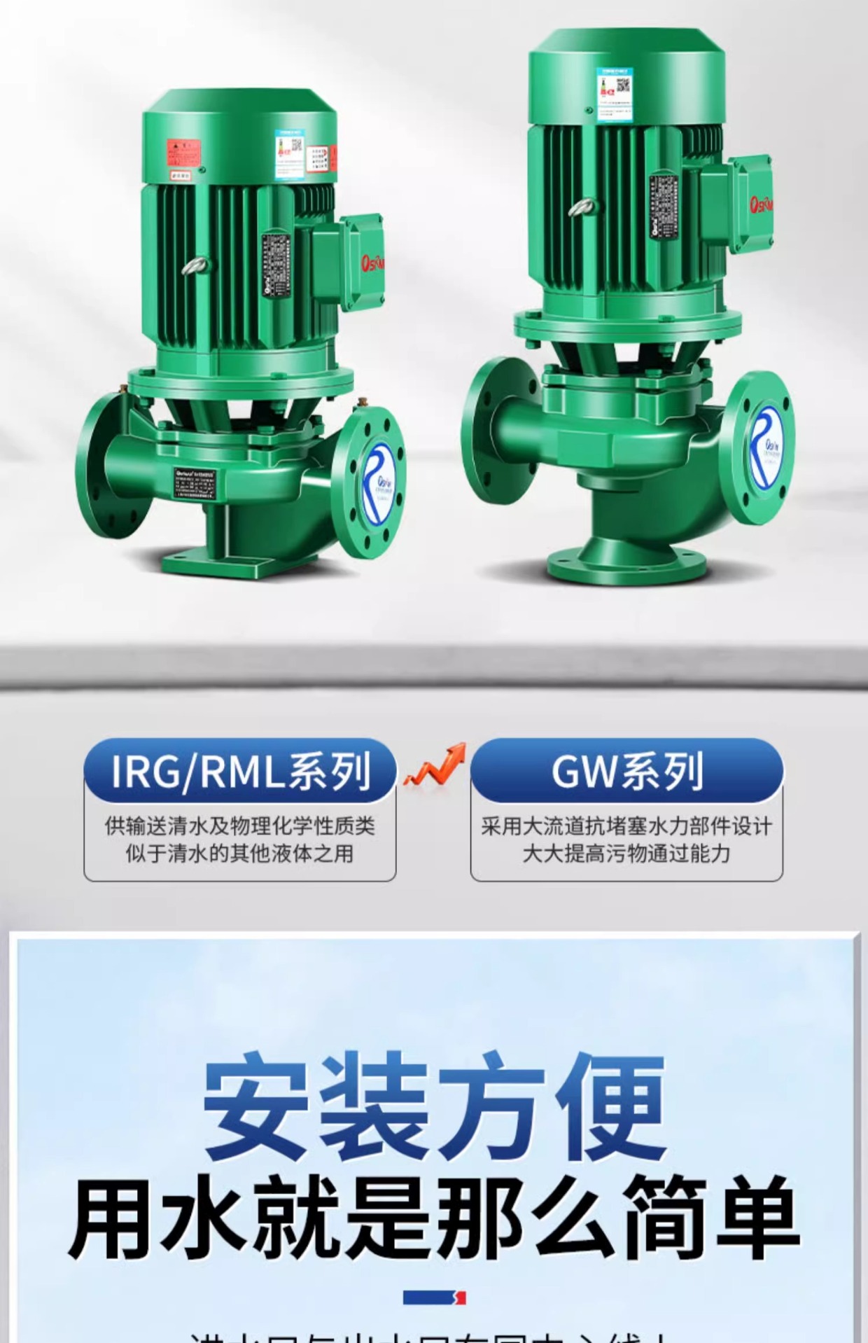 SRM人民水泵 卧式管道泵 RMW50-125-1.5 12.5吨 20米 1个