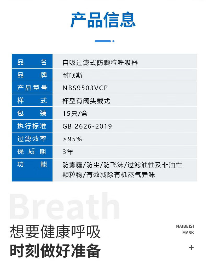 耐呗斯 头带活性炭口罩 NBS9535VCP 有呼吸阀 1只