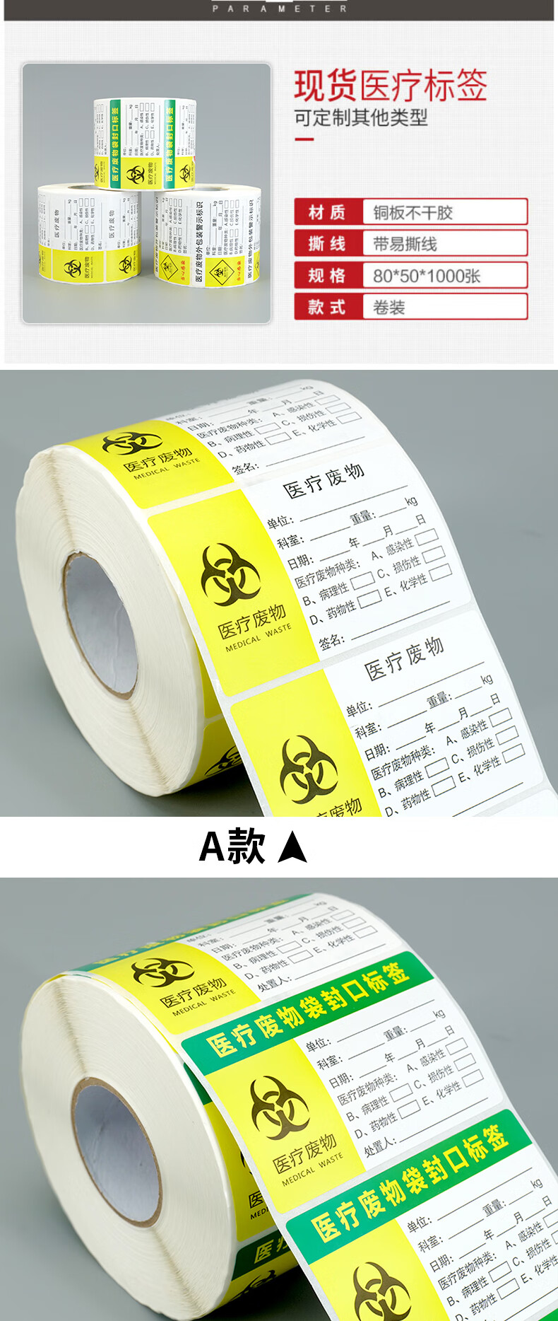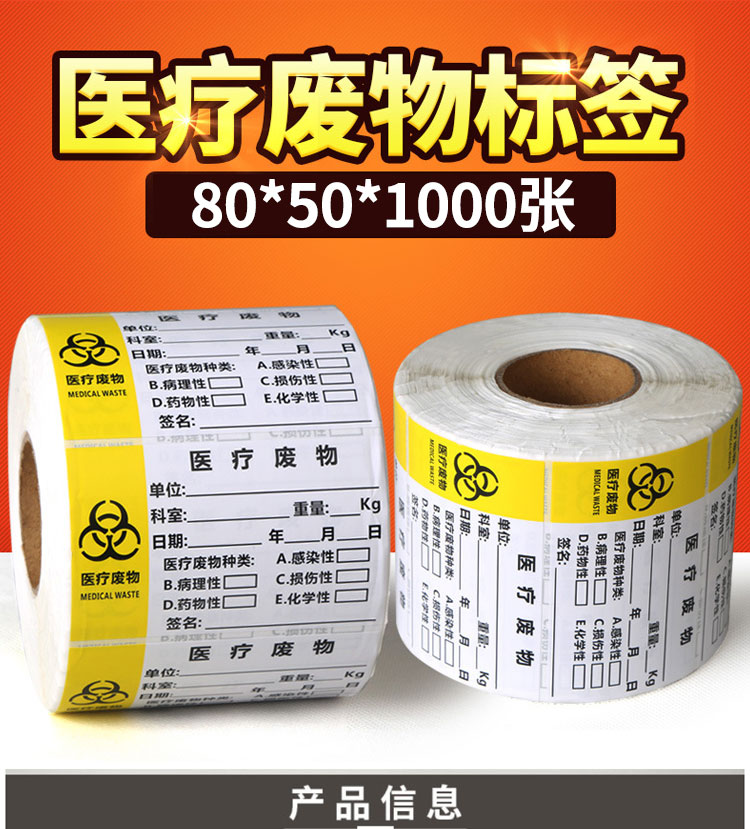 赫思迪格 医疗废物标签 JG-1484 A款 80*50mm 1个